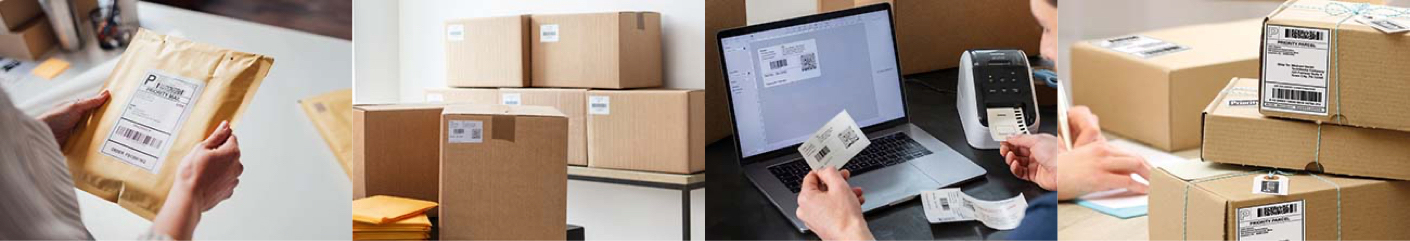 To print professional quality shipping labels, discover Brother’s QL range of label printers. Use them with Brother genuine label tapes for labels with crisp text, bar codes, logos and more that meet major shipping companies’ standards.