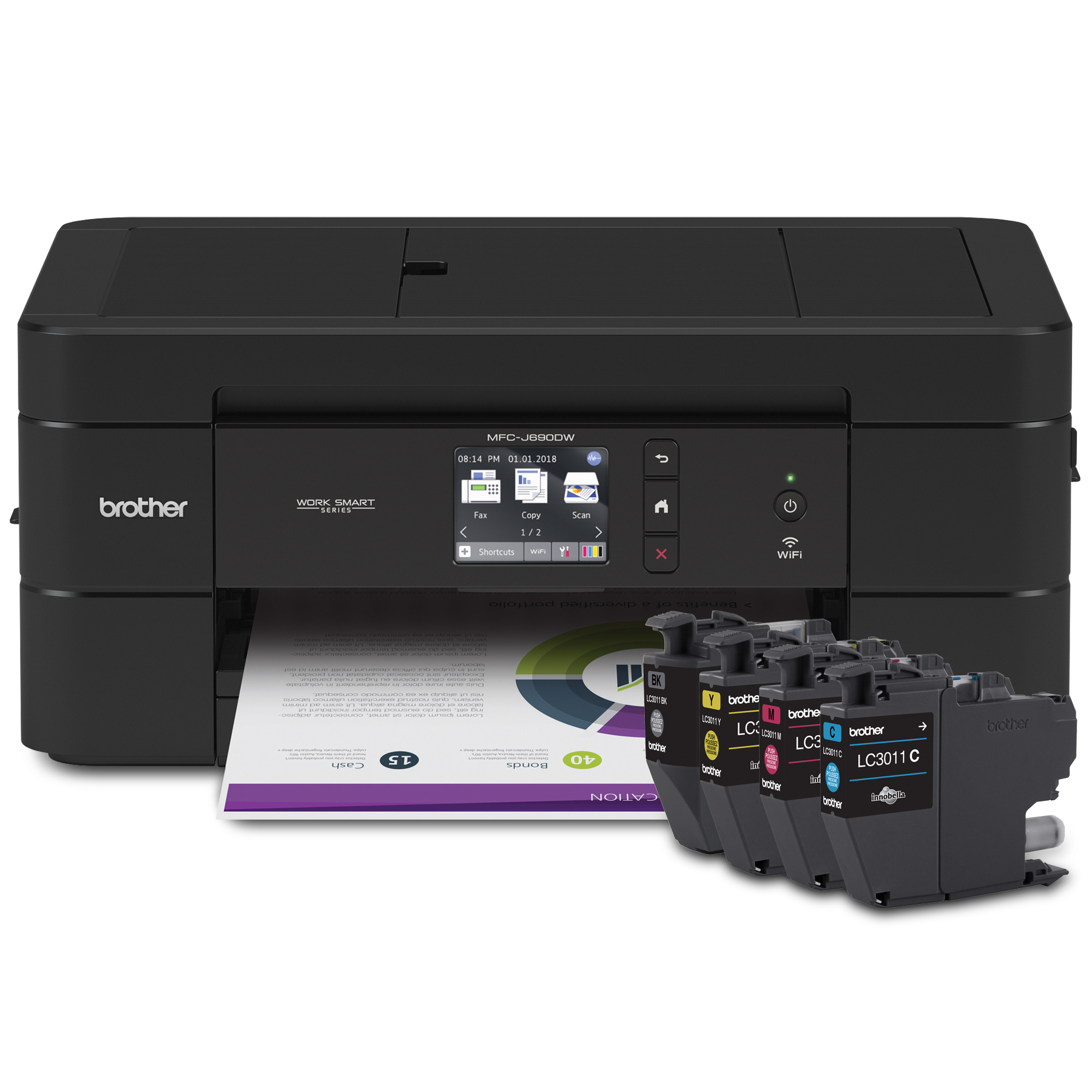 The Brother Work Smart Series MFC-J690DW delivers affordable printing plus the features and functions to meet your home, home office or small office print, copy, scan, and fax needs. See full description