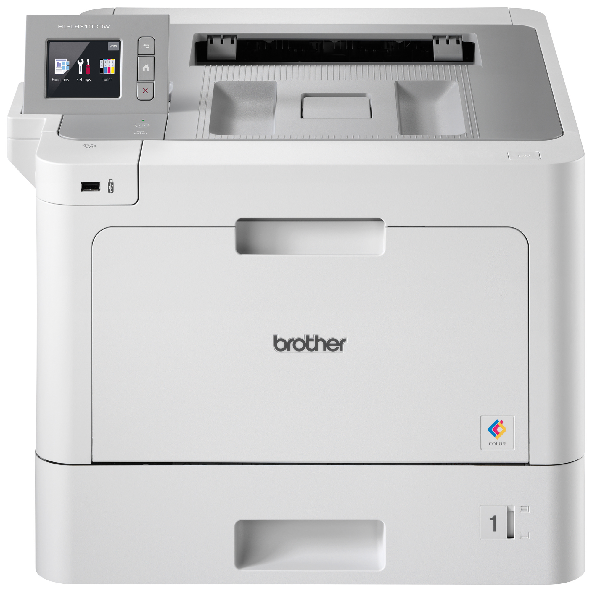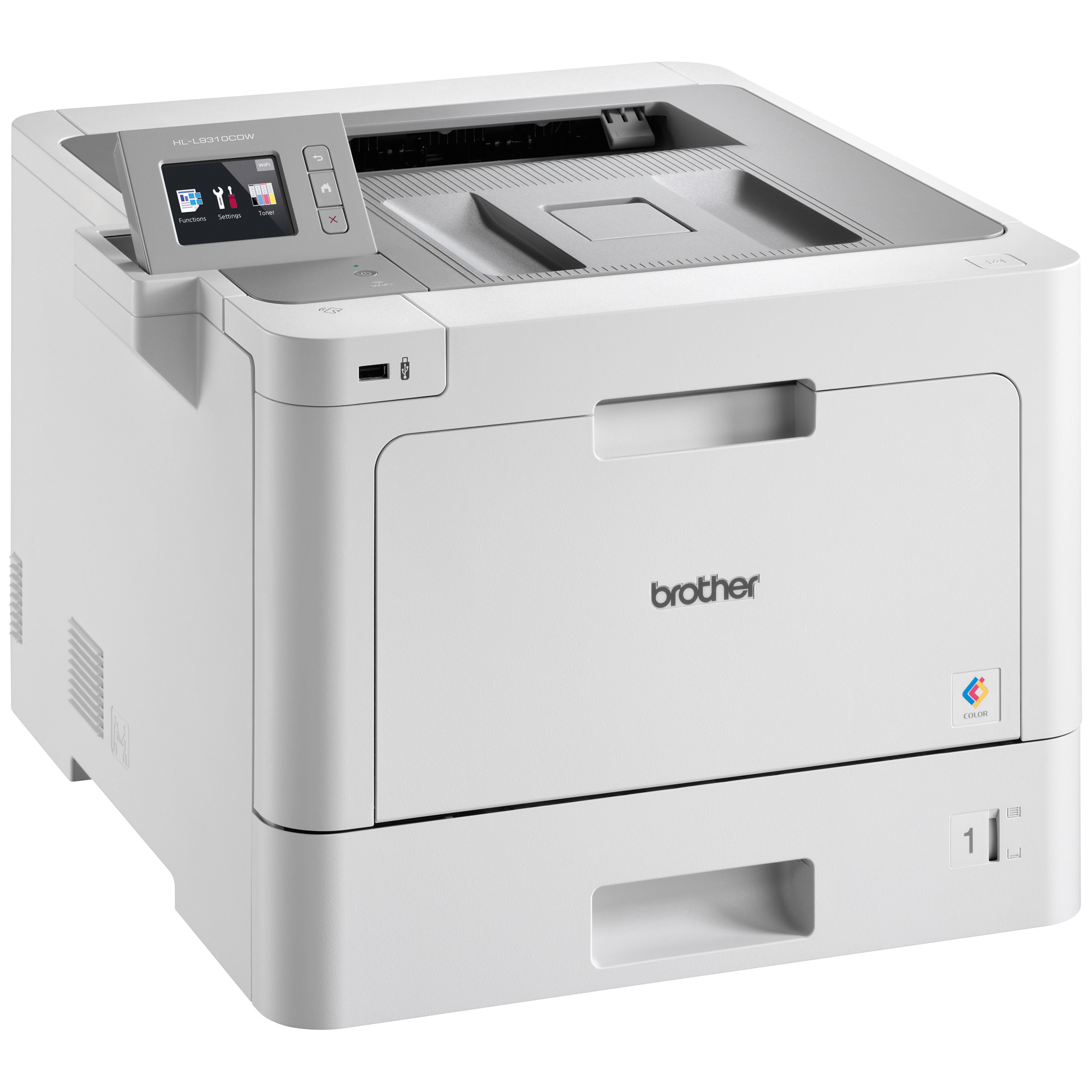 The Brother HL-L9310CDW business-durable colour laser printer is designed for mid-sized workgroups with higher print volumes. Low total cost of ownership with included super high-yield 6,500-page cartridges and even lower cost printing with ultra high-yield 9,000-page Brother Genuine replacement cartridges (approximate yields based on ISO/IEC 19798). Prints up to 33ppm in black and colour. Scalable to fit virtually any office, add either optional trays to increase capacity to 1,300 sheets or transform this printer into a floor-standing model with the tower tray option (520 sheets x 4 trays). 2.7" colour Touchscreen display provides easy navigation. Advanced security features for network user authentication.