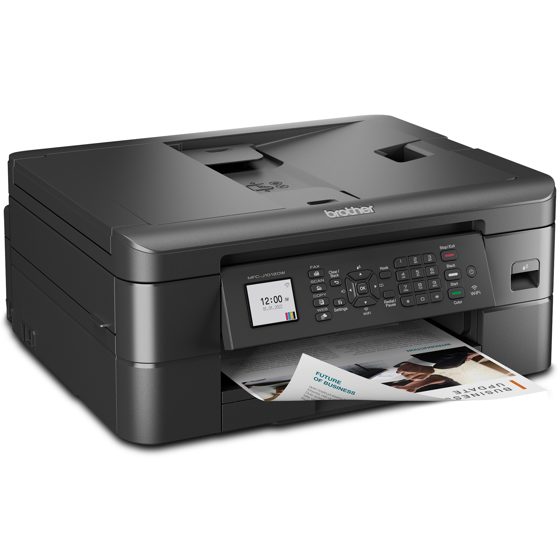 With fast print speeds and business-centric features, the MFC-J1012DW colour inkjet all-in-one is perfect for home, home office or small office use. Multiple wired and wireless connection options and flexible paper handling offer optimal convenience for high-quality output. See full product description
