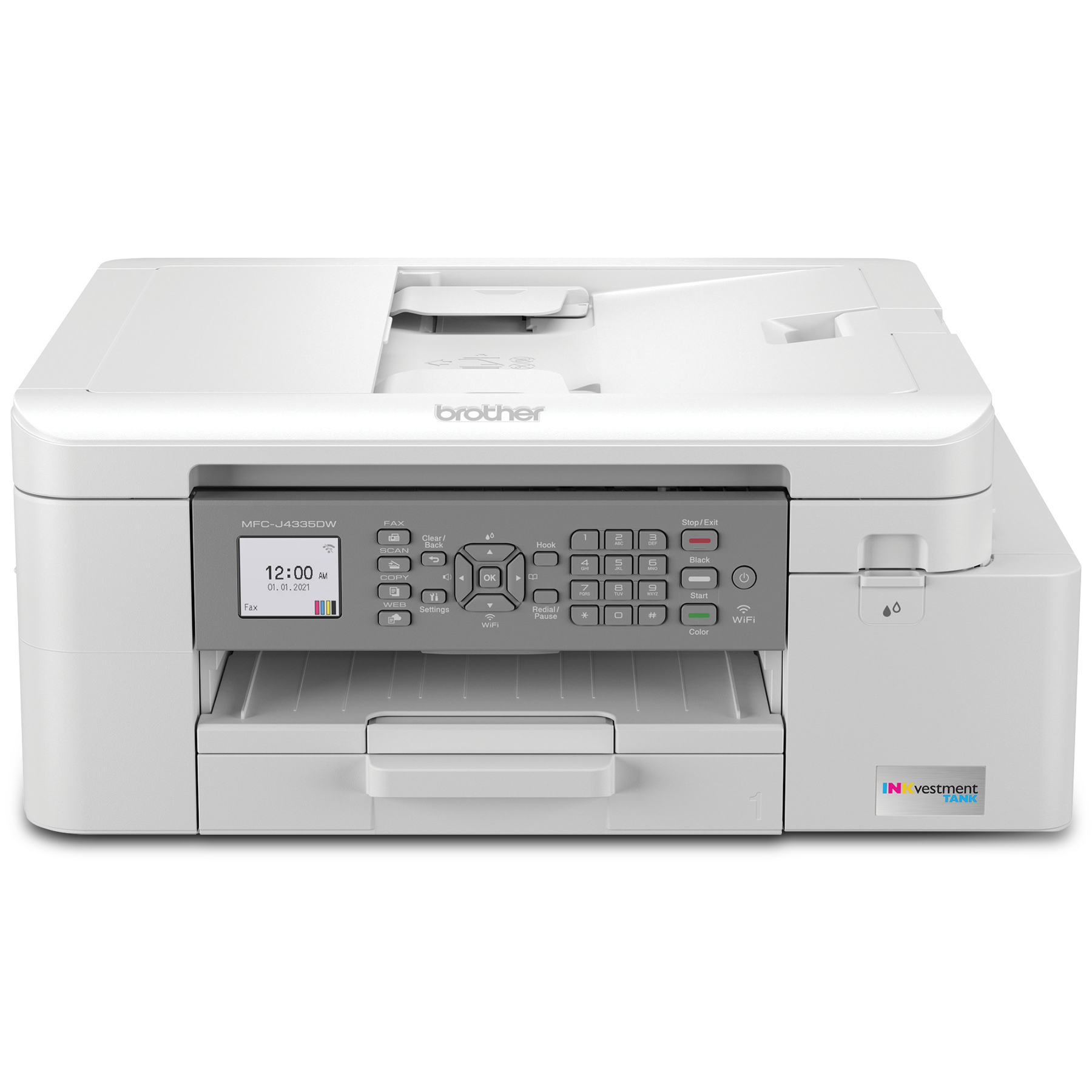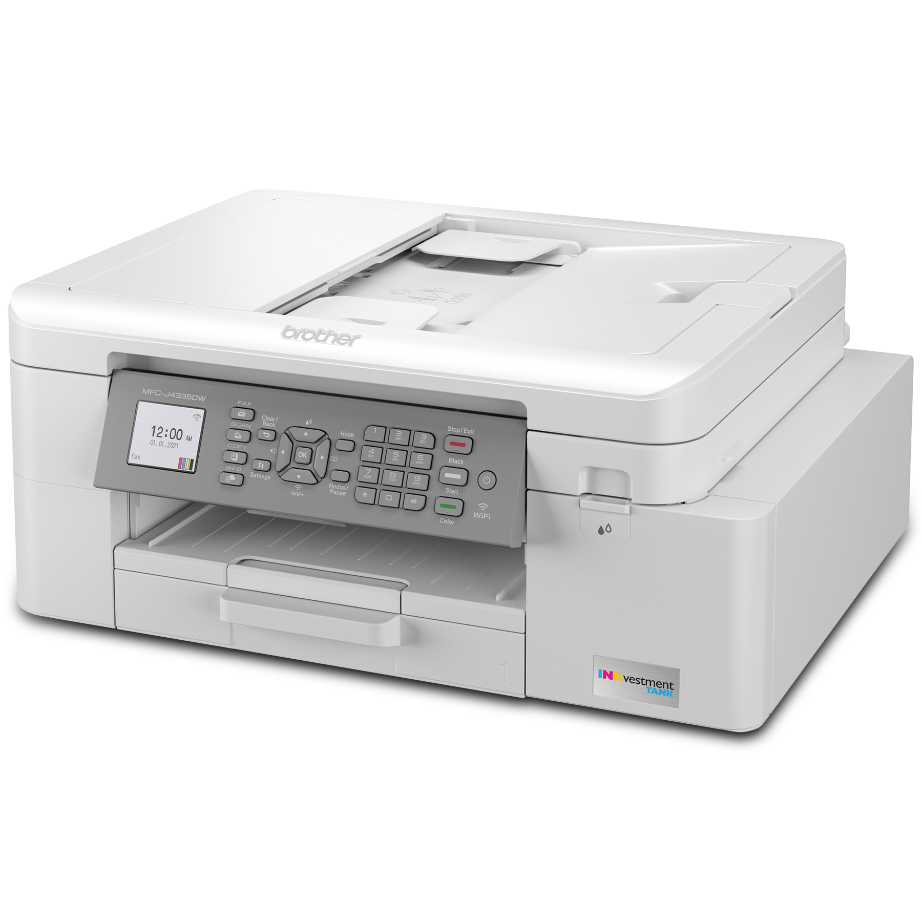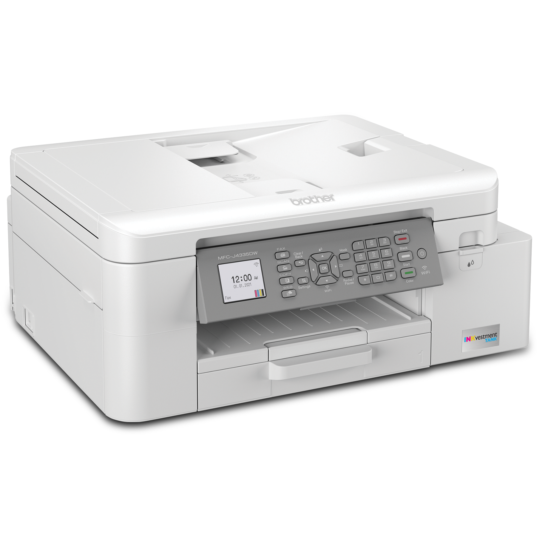 The MFC-J4335DW INKvestment Tank all-in-one colour inkjet printer is ideal for home and home office use. Its reengineered high-capacity in-box ink cartridges provide up to 1 year of uninterrupted printing. Print and copy from your mobile device plus scan and fax. See full product description