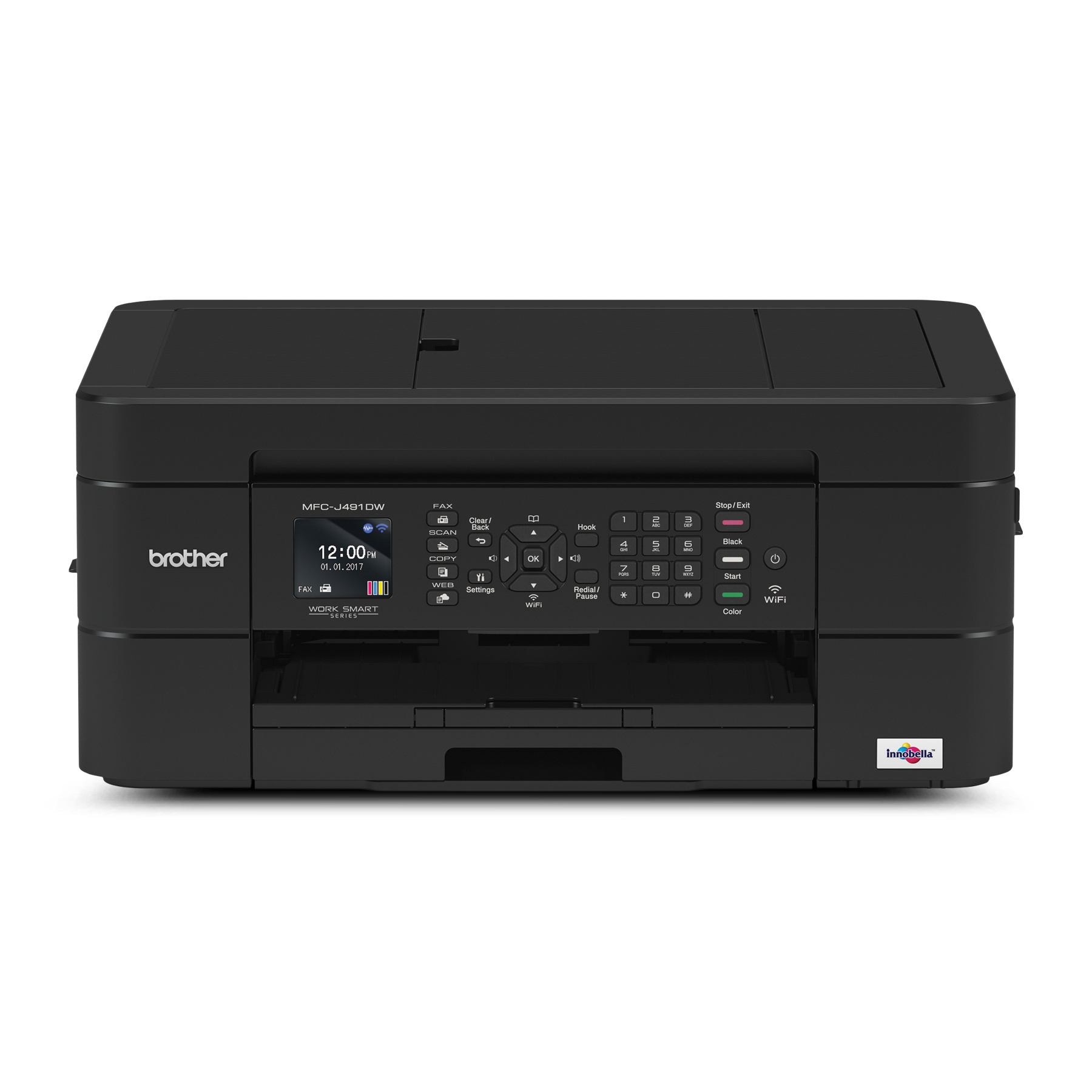 The Brother Work Smart Series MFC-J491DW is easy to connect, compact, affordable and loaded with features and functionality to help boost productivity in your home, home office, dorm room or small office. This wireless colour inkjet all-in-one delivers high-quality output, lets you reliably print, copy, scan and fax and enables wireless mobile device printing from your desktop, laptop, smartphone or tablet. Use the automatic document feeder and 100-sheet capacity paper tray for generous output without constant monitoring and help save paper with automatic duplex (2-sided) printing. Cloud connectivity lets you print-from and scan-to popular Cloud services directly from the printer. Comes with a one-year limited warranty and free online or live chat support for the life of the printer.