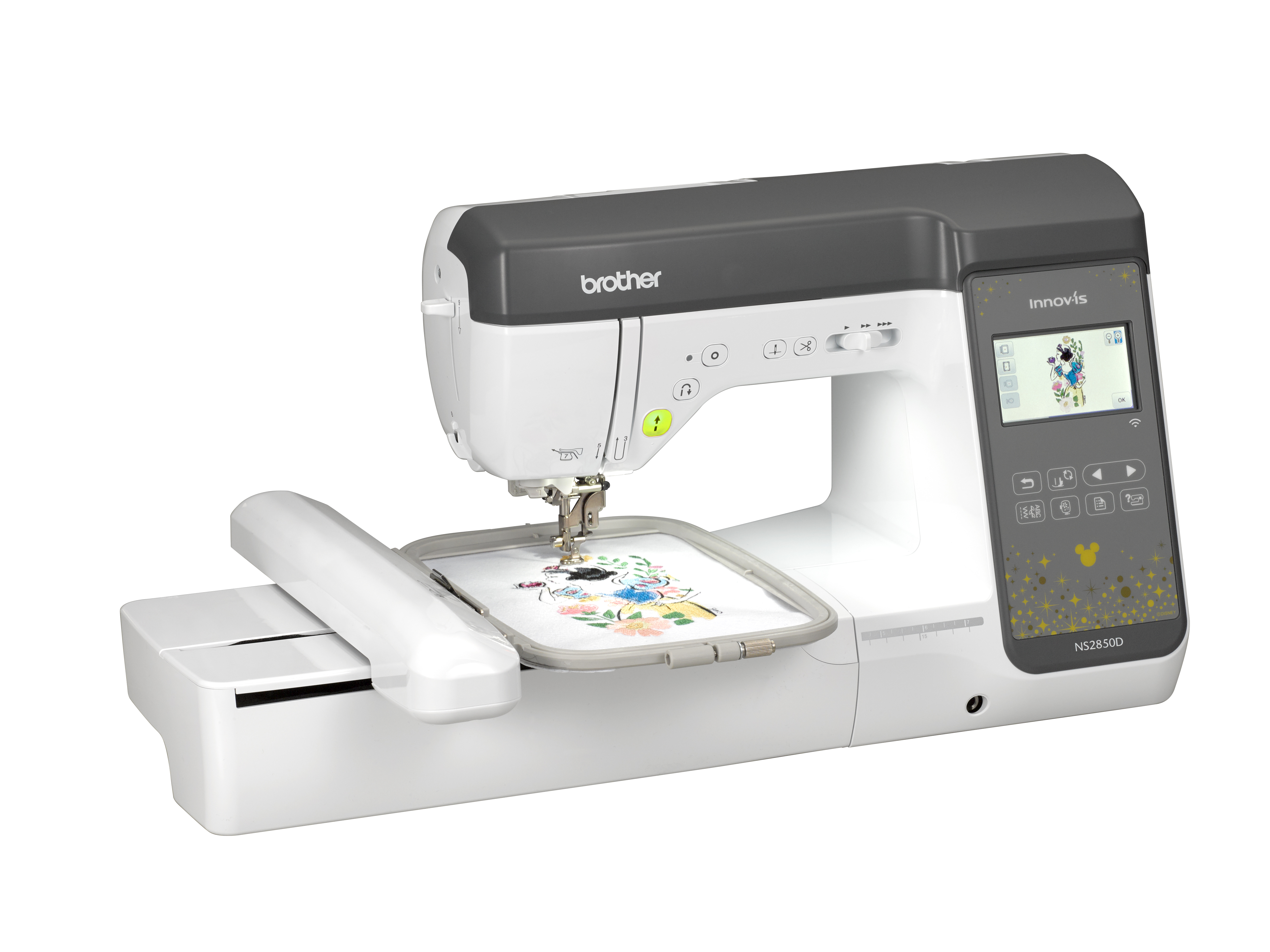 The Brother NS2850D is the perfect sewing and embroidery partner. Tech-savvy and portable, it's loaded with features that bring your inspiration to life. Enjoy the benefits of advanced capabilities, generous 5" x 7" embroidery area, 3.7" LCD display, and more. See full product description