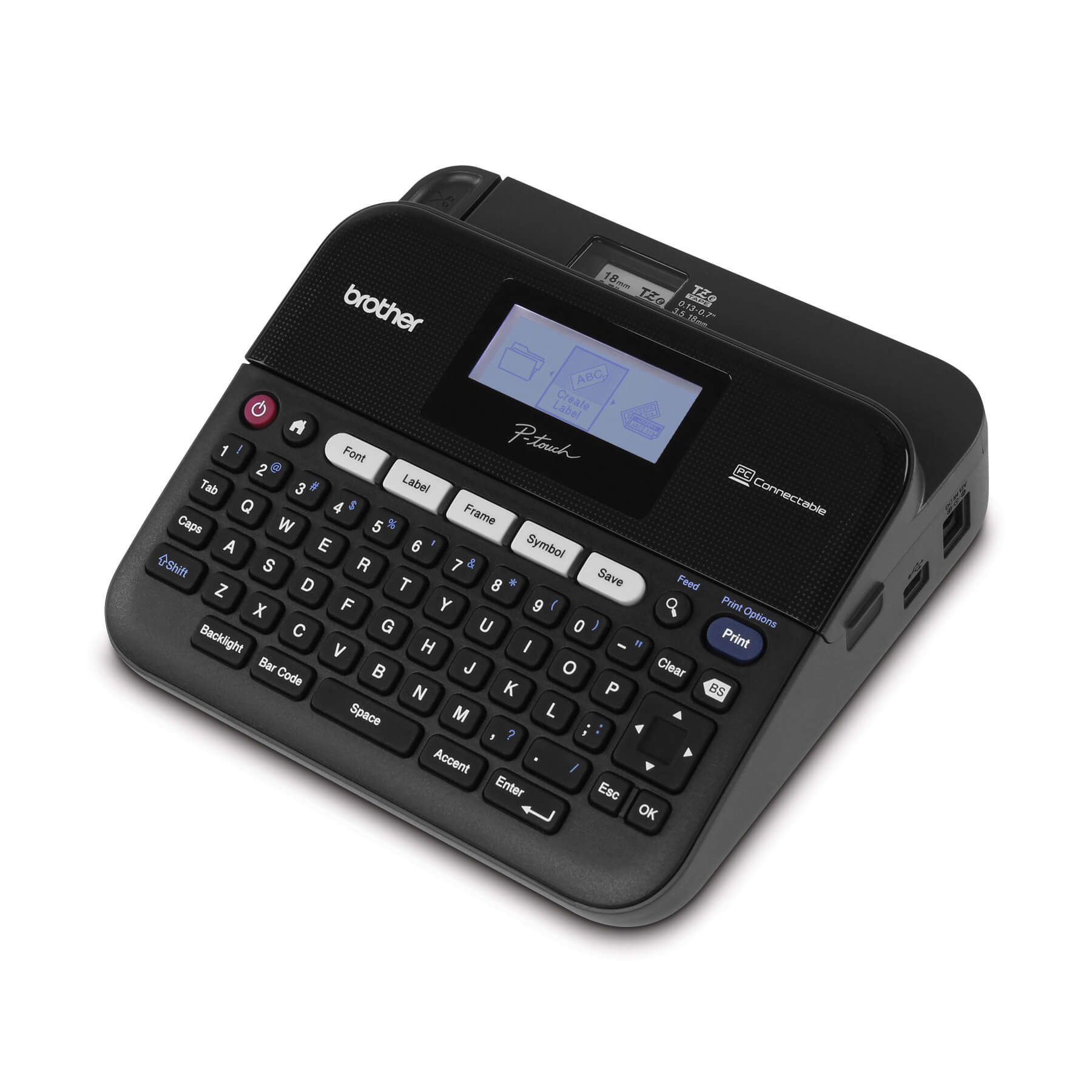 The PT-D450 is a versatile, PC-connectable label maker that allows you to quickly create personalized, professional-looking labels using the built-in keyboard or connected to a computer. With 14 fonts, 10 font styles, over 600 symbols plus barcodes, this full-featured label maker can meet virtually all your small office or home office labelling needs. Just type, format with one-touch keys and print. You can even save up to 50 labels in the large memory, a great time-saving feature. With its included AC power adapter and USB cable, you can be confident that your label maker will be ready when you are.The PT-D450 works with 4 different TZe tape widths - and the convenient, top-loading tape design lets you easily change tape cassette sizes and colours.Standard TZe tapes are durable and laminated, so they withstand water, heat and fading. See the Supplies & Accessories tab to view our full-line of standard and specialty TZe tapes.
