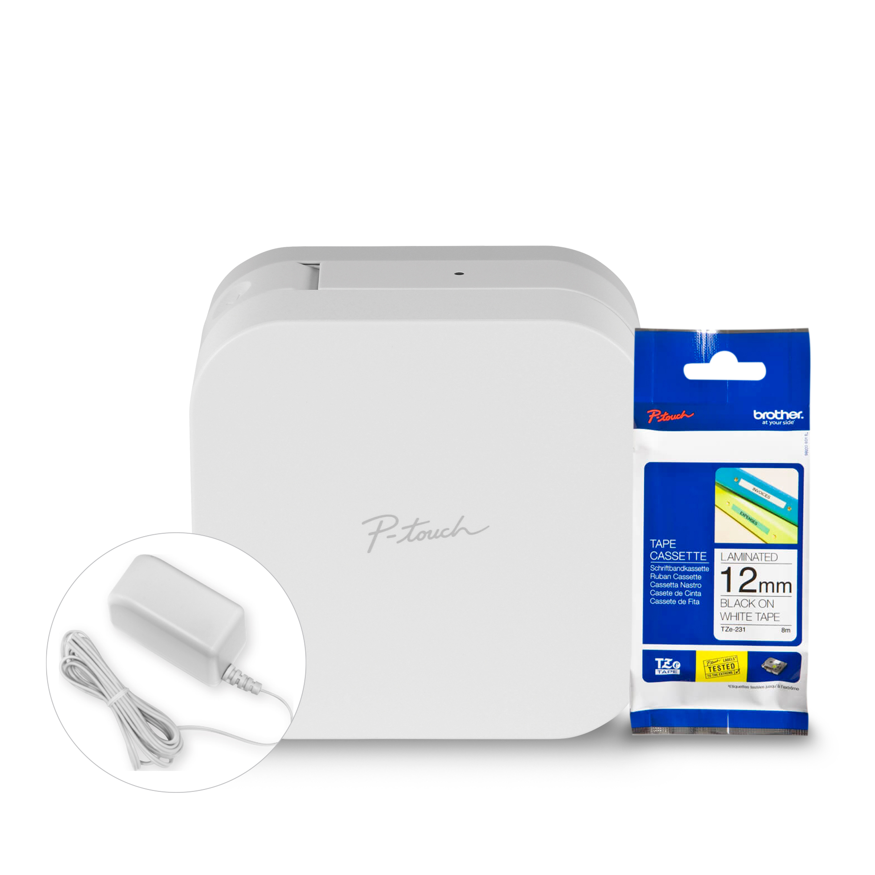 Brother R3ADTZE231BUND Refurbished PTP300BTAD P-touch CUBE Label Maker and TZE231 Laminated Black on White TZe Tape Bundle