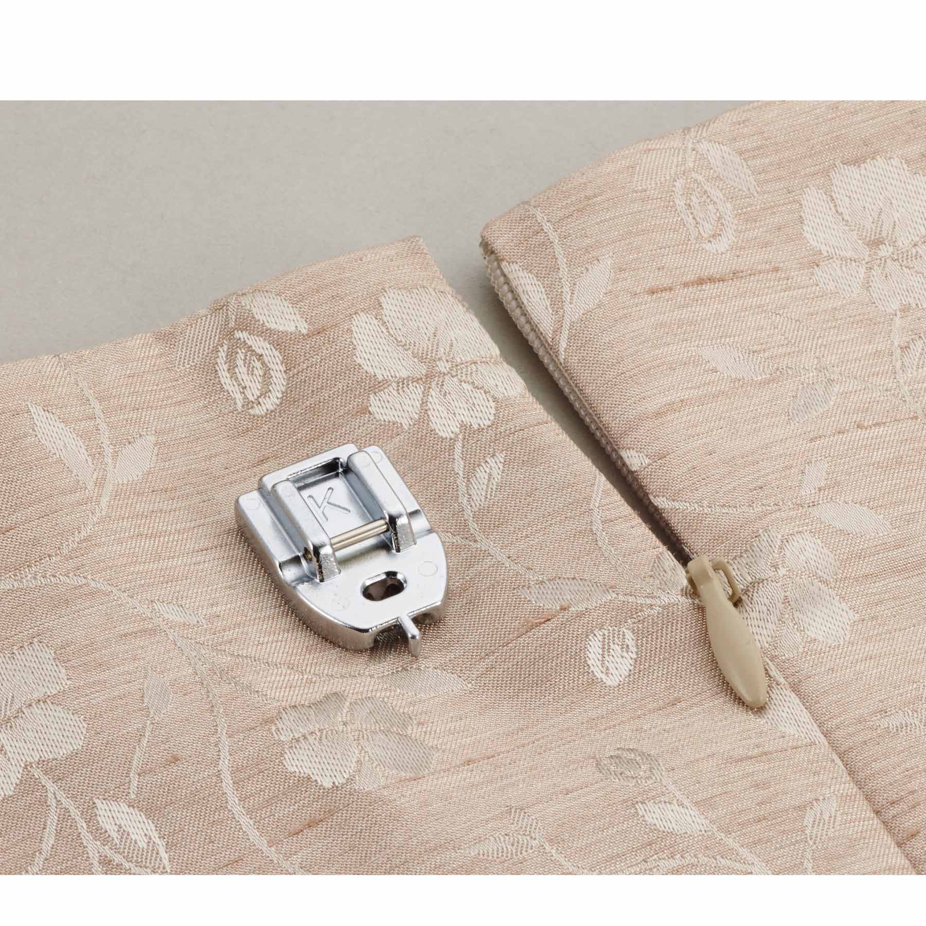 Make tricky zipper insertions a thing of the past with the Brother SA102 Concealed Zipper Foot. This foot holds your zipper coils in place while you sew letting you achieve a professional top-stitched finish. Once you get your hands on this helpful add-on accessory, you ll wonder how you ever managed without it!