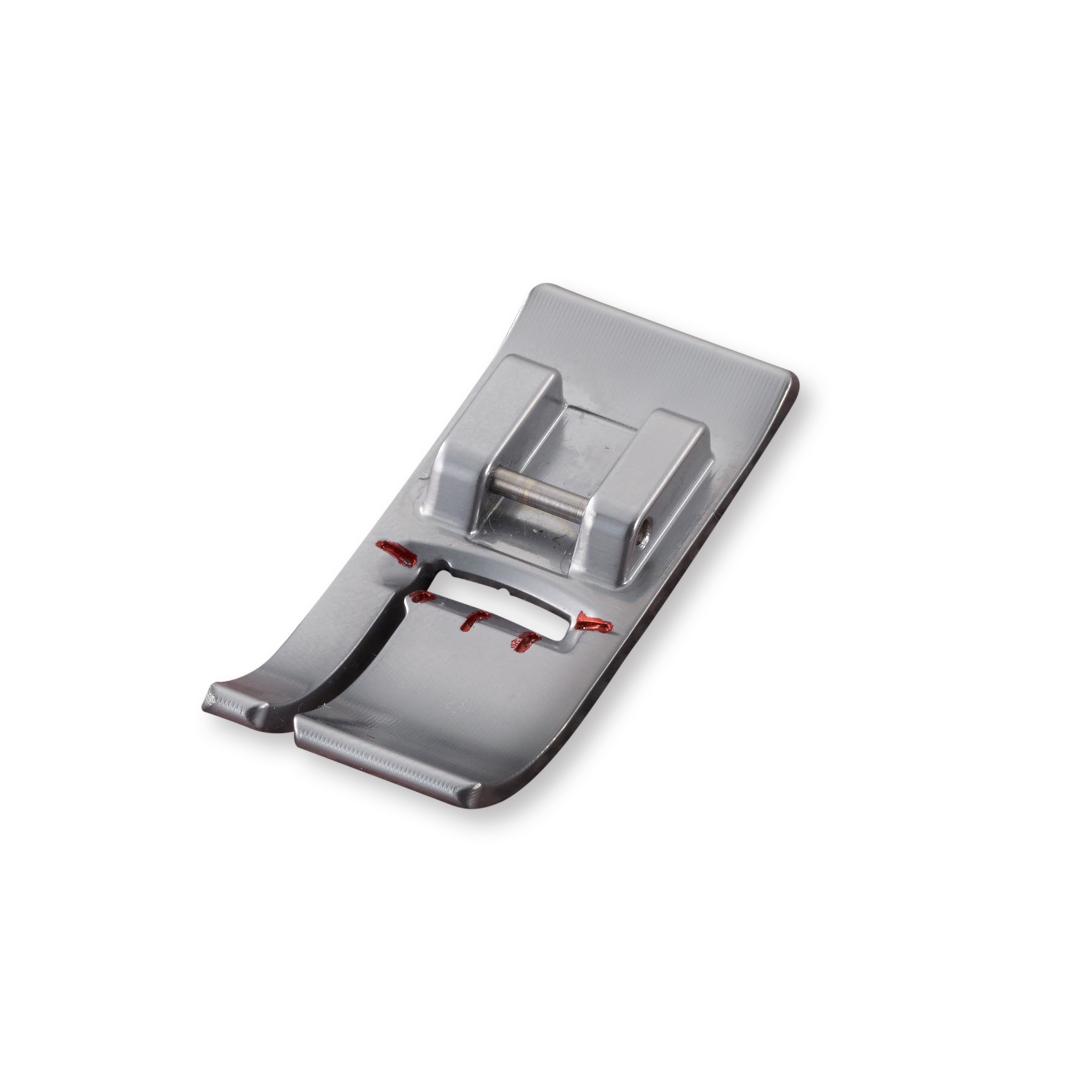 Achieve precise topstitching and edge stitching over seams and different thicknesses of fabric on the left side with the Brother SA104C Bi-level Foot, Left. A must-have addition to your roundup of sewing machine accessories, this add-on is also good for topstitch binding when quilting.