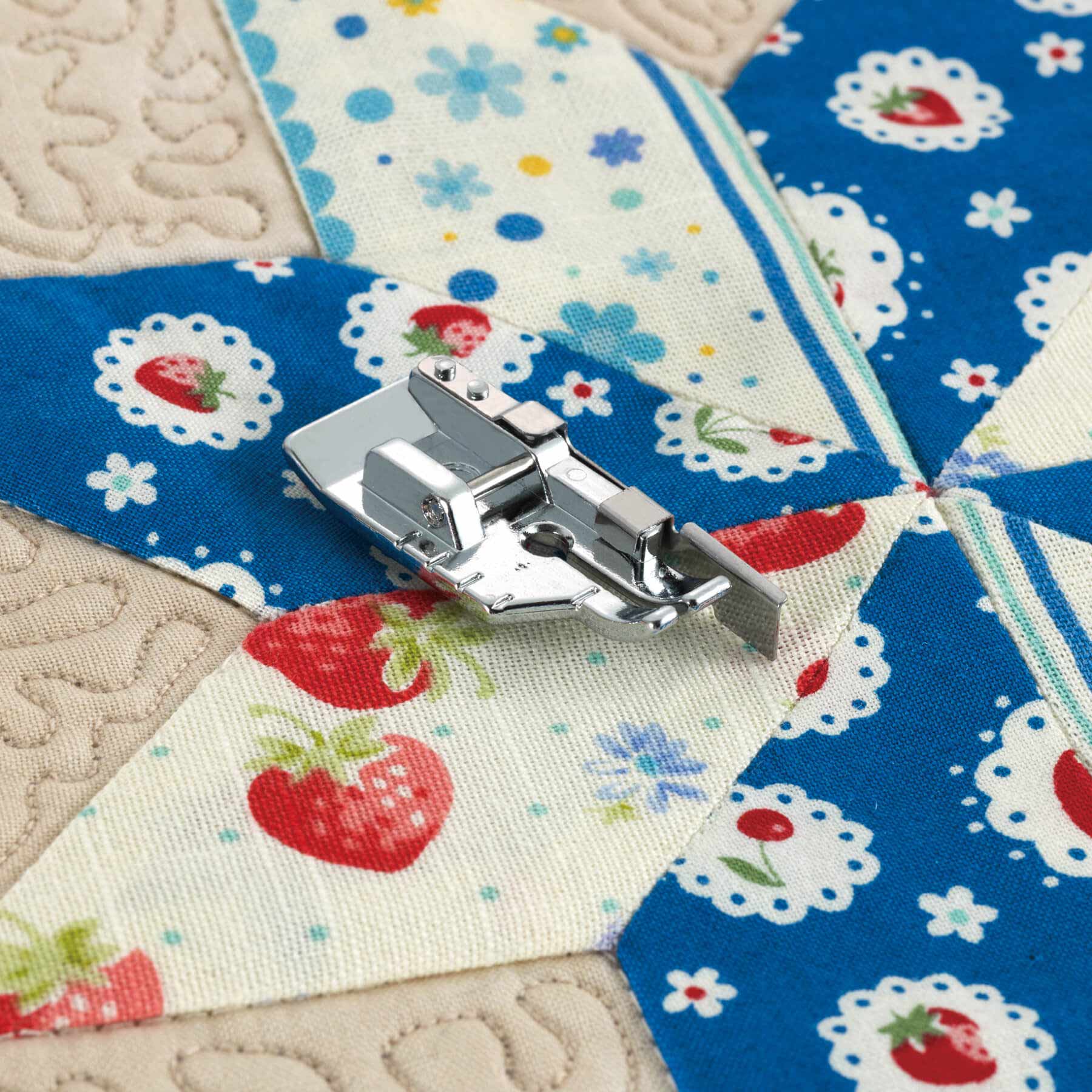 Genuine Brother® Accessory. Exclusively for centered straight stitching quarter inch seams on fine fabrics. Quarter inch piecing foot with blade for seam sewing. Accurate reference marking on 3 sides of foot for visibility and accuracy. Single hole foot prevents fabrics from sinking into feed dogs.