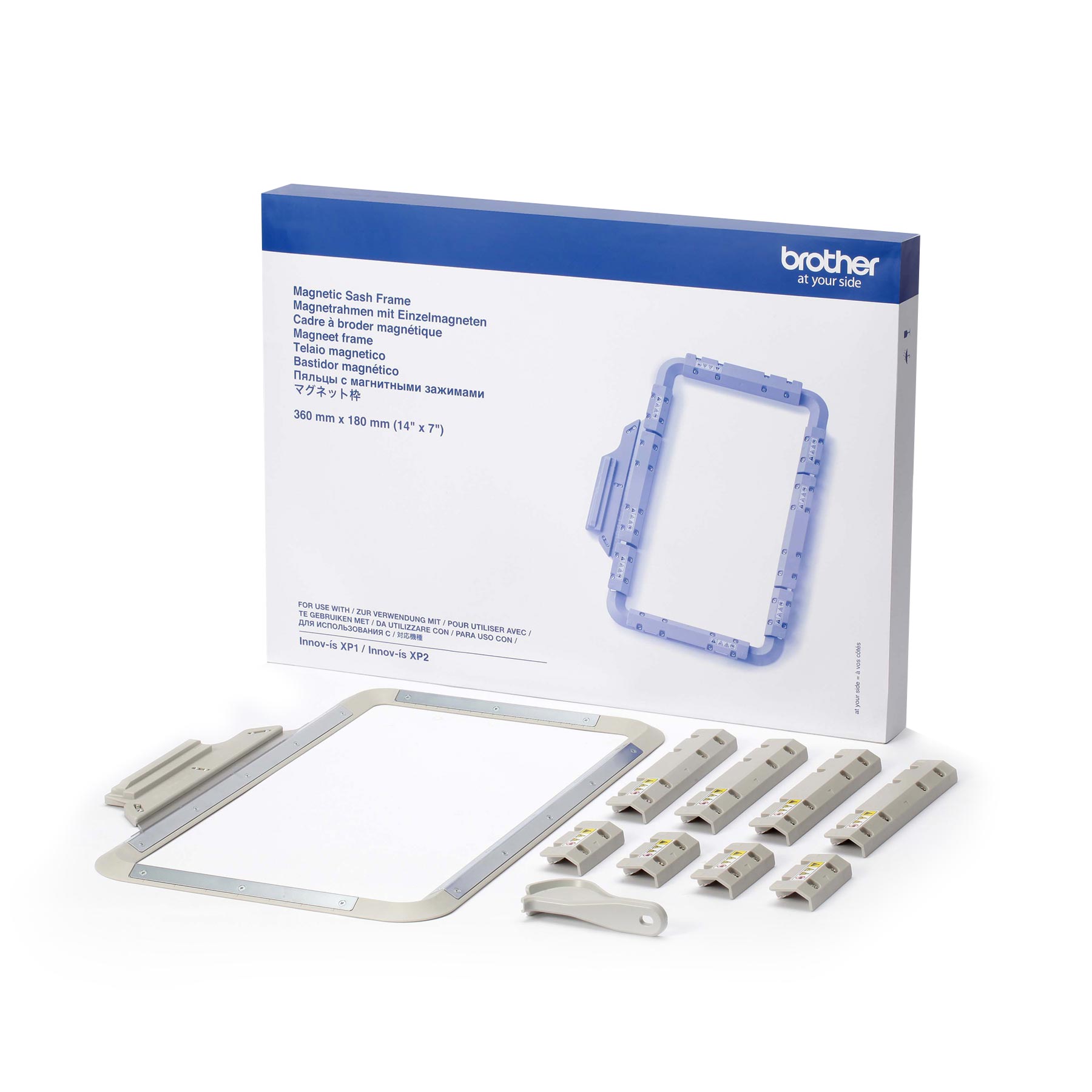 Brother s Patent-Pending Exclusive Hoopnetic Magnetic Frame features 8 magnets that help you hoop and embroider thick materials with ease. Say goodbye to fabric shifting and the need to re-hoop the fabric when connecting designs or embroidering large areas. Just slide the fabric on the frame for the next area to be embroidered and you re ready to use it with Brother XP1 and XP2 embroidery machine models.