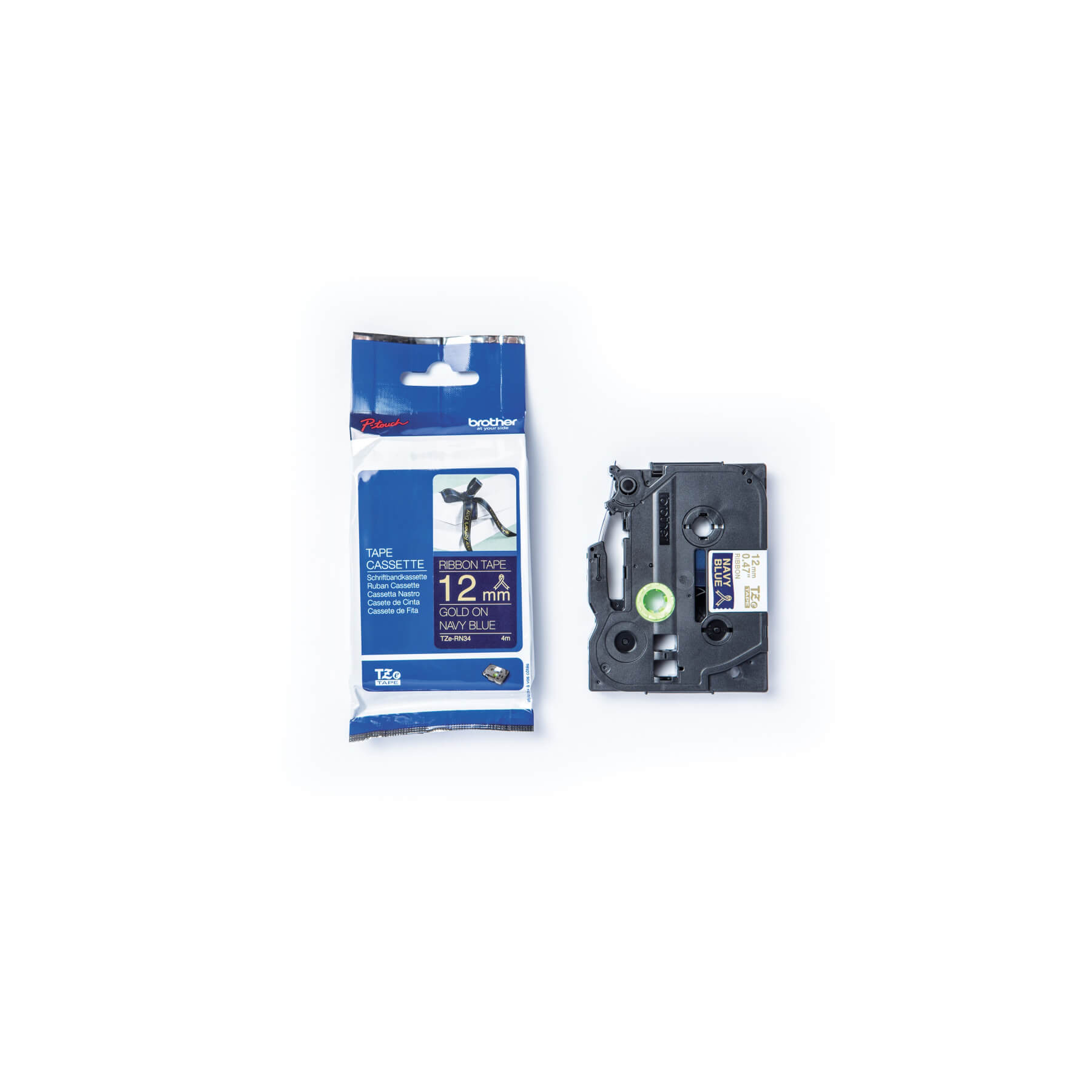 Use your P-touch labeller and this Brother TZERN34 Decorative ribbon to add a little something special to your home office, school supplies, crafts and more. Printing in Gold on Navy Satin Ribbon, it s sure to bring a fun finishing touch to your all your labelling.