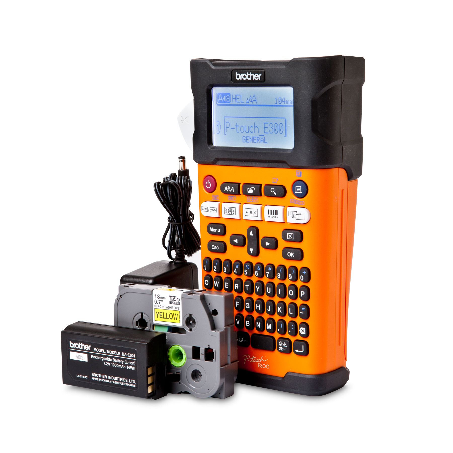 If you re a contractor, electrician or datacom professional, you know that precise labelling is essential to a job well done and that s exactly what you ll get with Brother s PT-E300VP handheld industrial labeller. The perfect choice for commercial projects, this labeller offers more labelling features and more label application keys to facilitate label printing for cable wrapping, cable flagging, faceplates, patch panel, punch block, serialization, barcoding and more. Designed with ease of use in mind, its backlit LCD display and QWERTY keyboard make data entry as simple as sending a text while intuitive menus simplify navigation. Loaded with nearly 400 industrial symbols and 9 barcode symbologies, this labeller has what you need to print durable laminated labels and heat shrink tubes up to 18 mm wide with up to 5 lines of text. For comfort and safety, a secure-grip feature allows for one- or two-handed operation and a rechargeable Li-ion battery delivers on-the-go power. And for an even smarter set-up, pick up an extra battery so you ll always have an energy source for your labeller no matter where you need it. Comes with a 1-year limited exchange warranty and free online or live chat support for the life of the product.