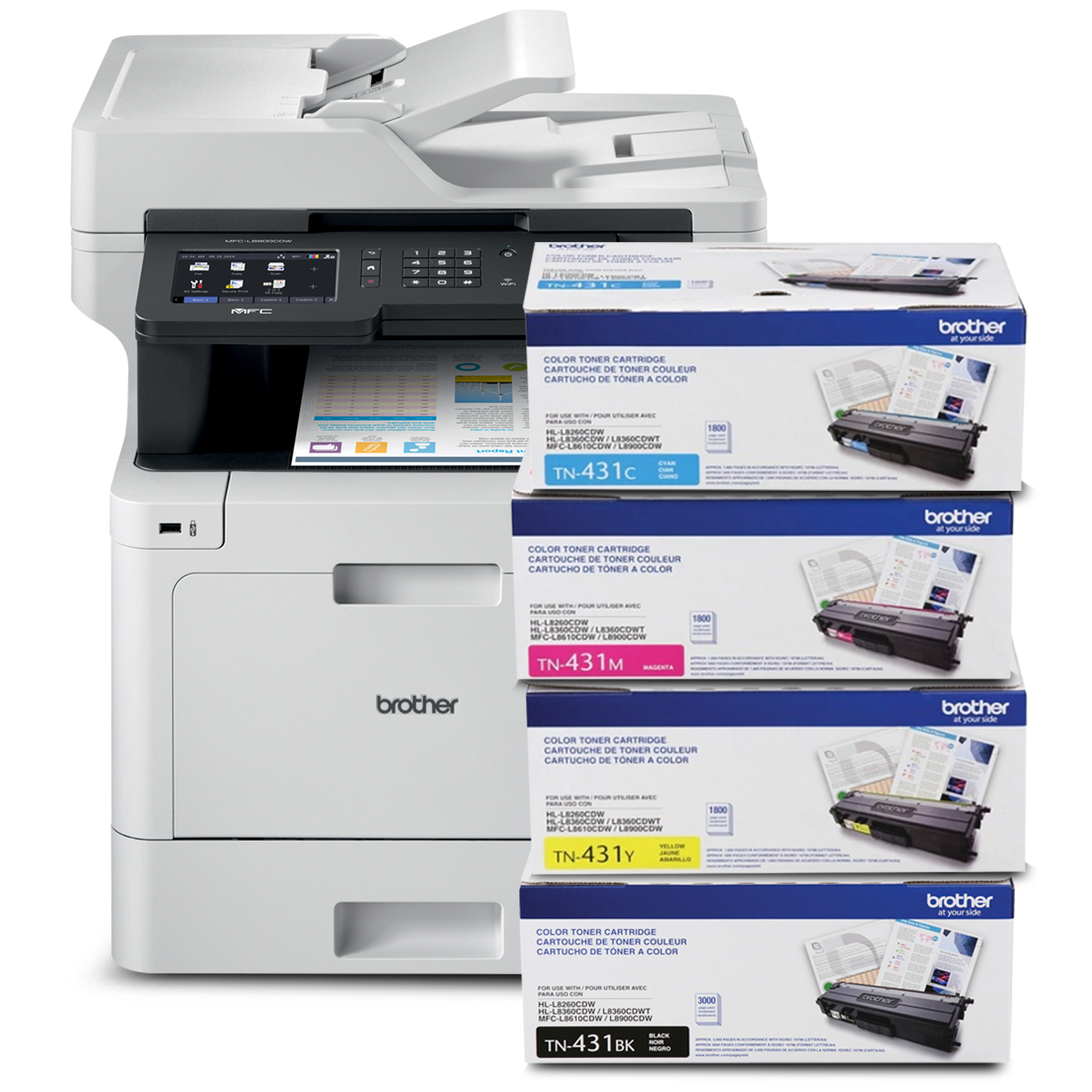 L ensemble MFC-L8900CDW de Brother inclut une imprimante multifonction laser couleur d affaires et quatre cartouches de toner TN431 (1 cyan, 1 magenta, 1 jaune et 1 noir). Son faible coût de possession le rend idéal pour les bureaux et les petits groupes de travail. Voir la description complète