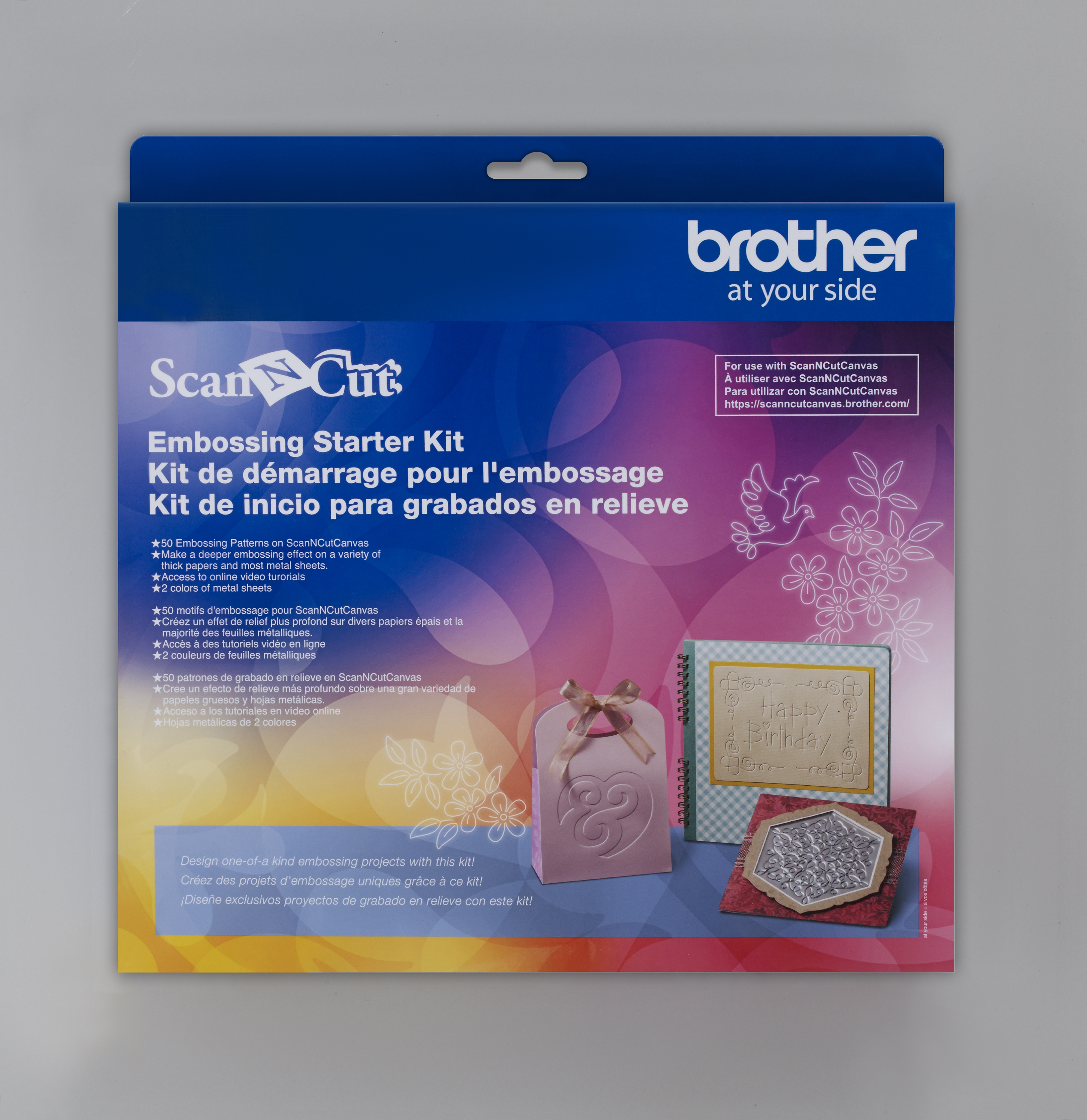 L'ensemble de démarrage pour l'embossage ScanNCut fournit tous les matériaux dont vous avez besoin pour créer un effet d'embossage sur le papier et le métal. Avec les fonctions d'embossage de ligne et de zone, il existe énormément de possibilités pour créer des projets uniques.