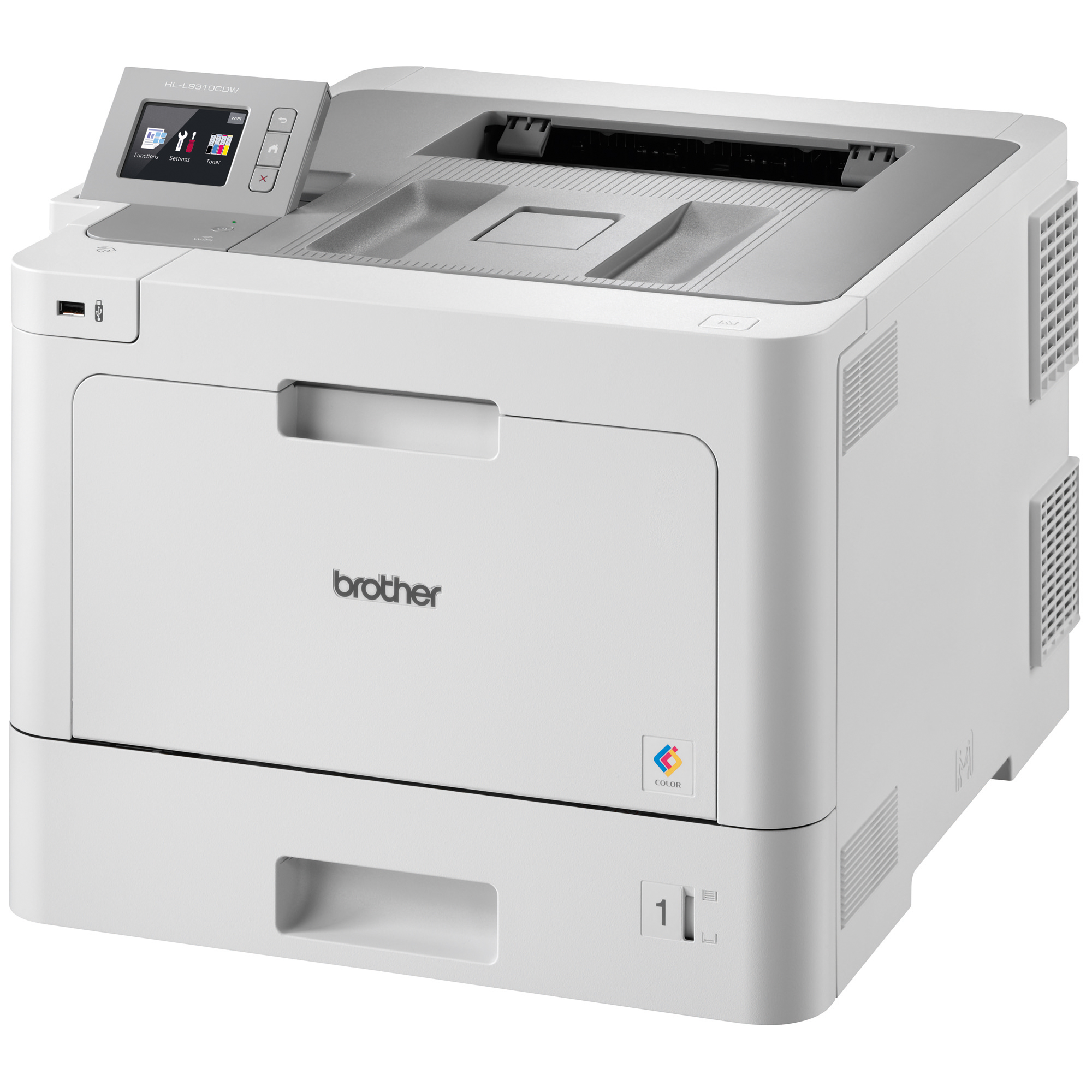L'imprimante laser couleur HL-L9310CDW de Brother faite pour l'entreprise est conçue pour les groupes de travail intermédiaires aux volumes d'impression plus élevés. Faible coût total de possession avec les cartouches à très haut rendement de 6 500 pages incluses et impression à coût encore plus réduit avec les cartouches de remplacement à ultra haut rendement authentiques de Brother de 9 000 pages (rendements approximatifs conformément à la norme ISO/IEC 19798). Imprime jusqu'à 33 ppm en noir et blanc et en couleurs. Adaptable à pratiquement n'importe quel bureau, soit en ajoutant des bacs en option pour augmenter la capacité à 1 300 feuilles ou en transformant cette imprimante en modèle au sol avec la tour de bacs en option (520 feuilles x 4 bacs). L'écran tactile couleur de 2,7 po assure une navigation aisée. Fonctions de sécurité avancées pour l'authentification des utilisateurs sur le réseau.