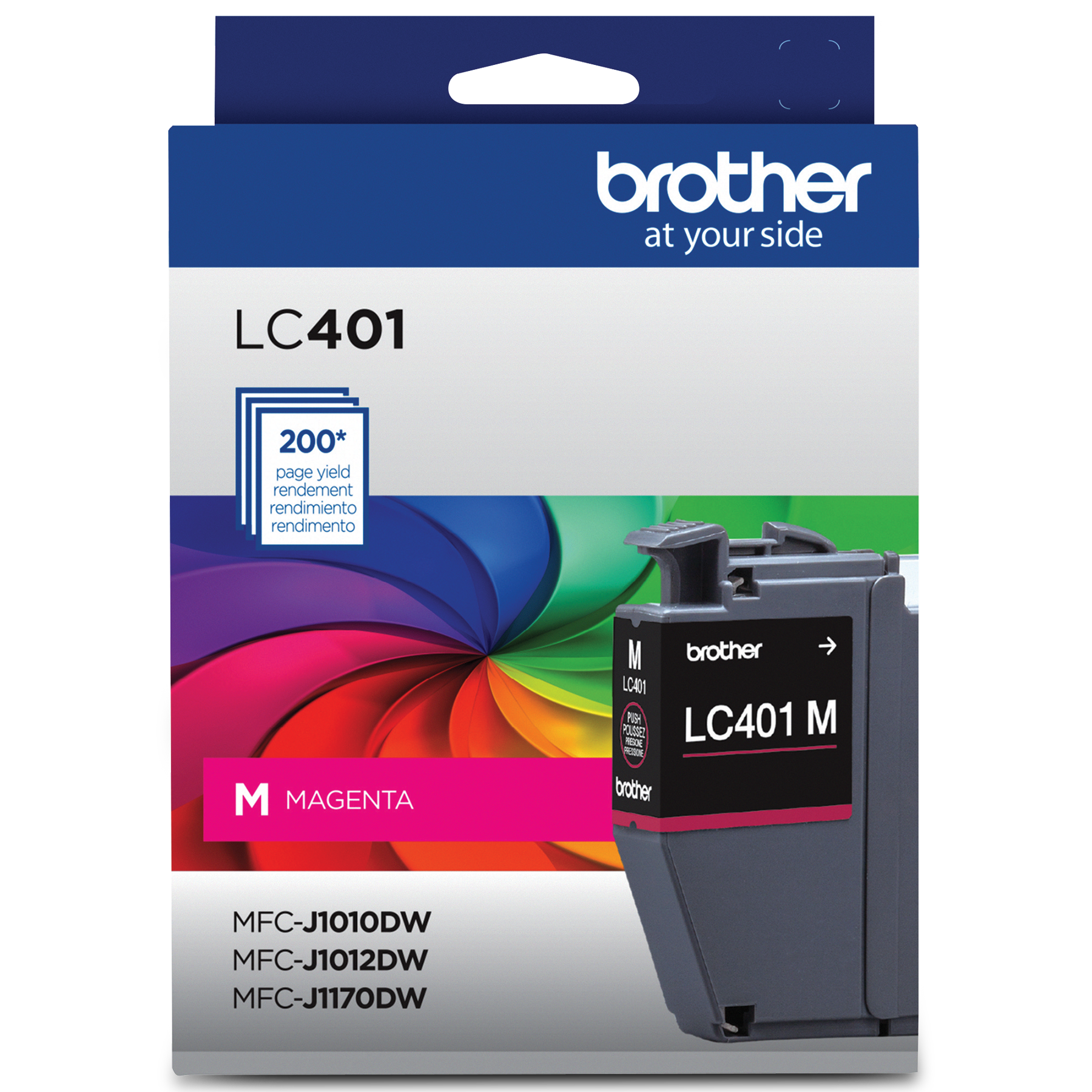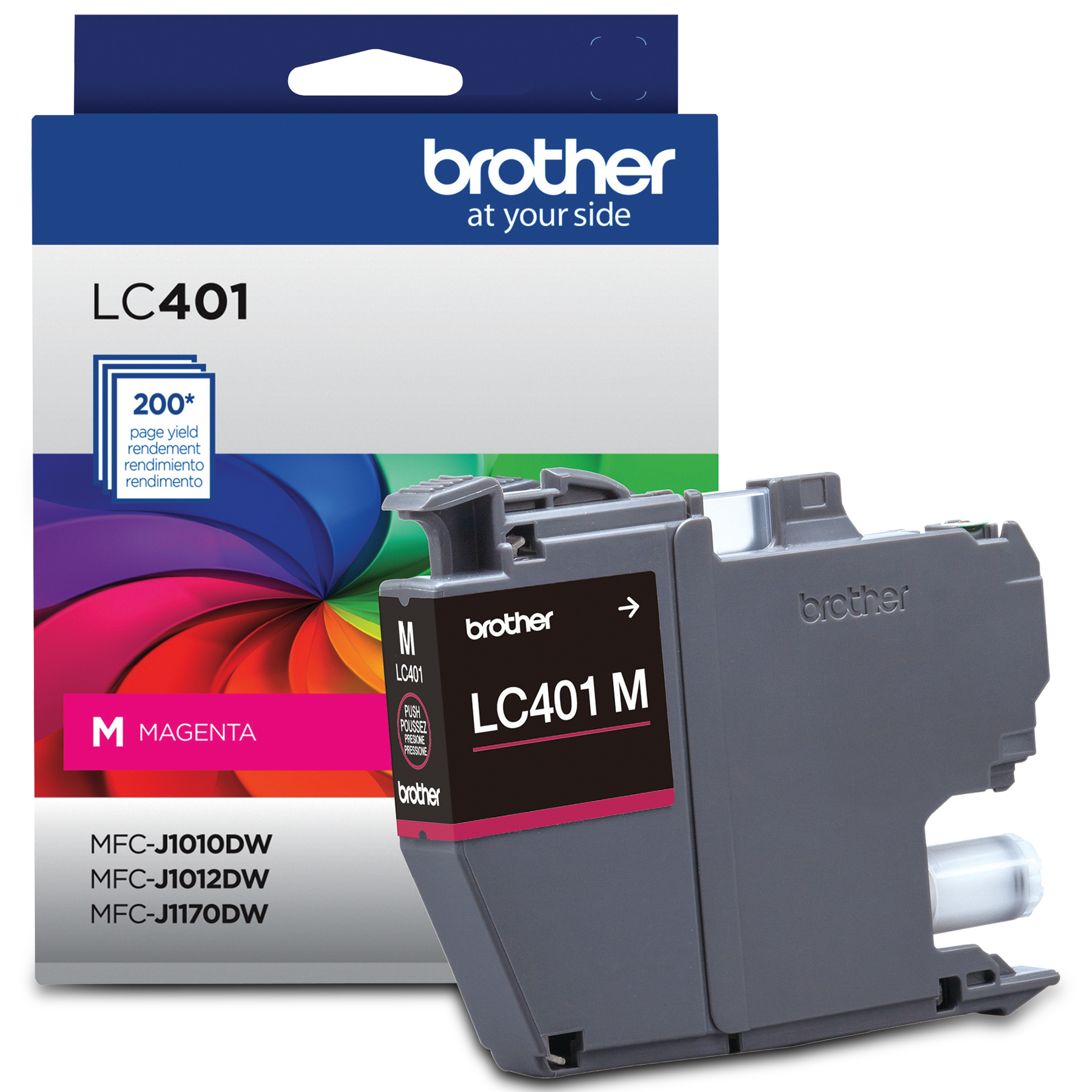 - La cartouche LC401MS d'origine Brother peut être utilisée avec les imprimantes multifonctions à jet d'encre couleur Brother suivantes : MFC-J1010DW, MFC-J1012DW et MFC-J1170DW.