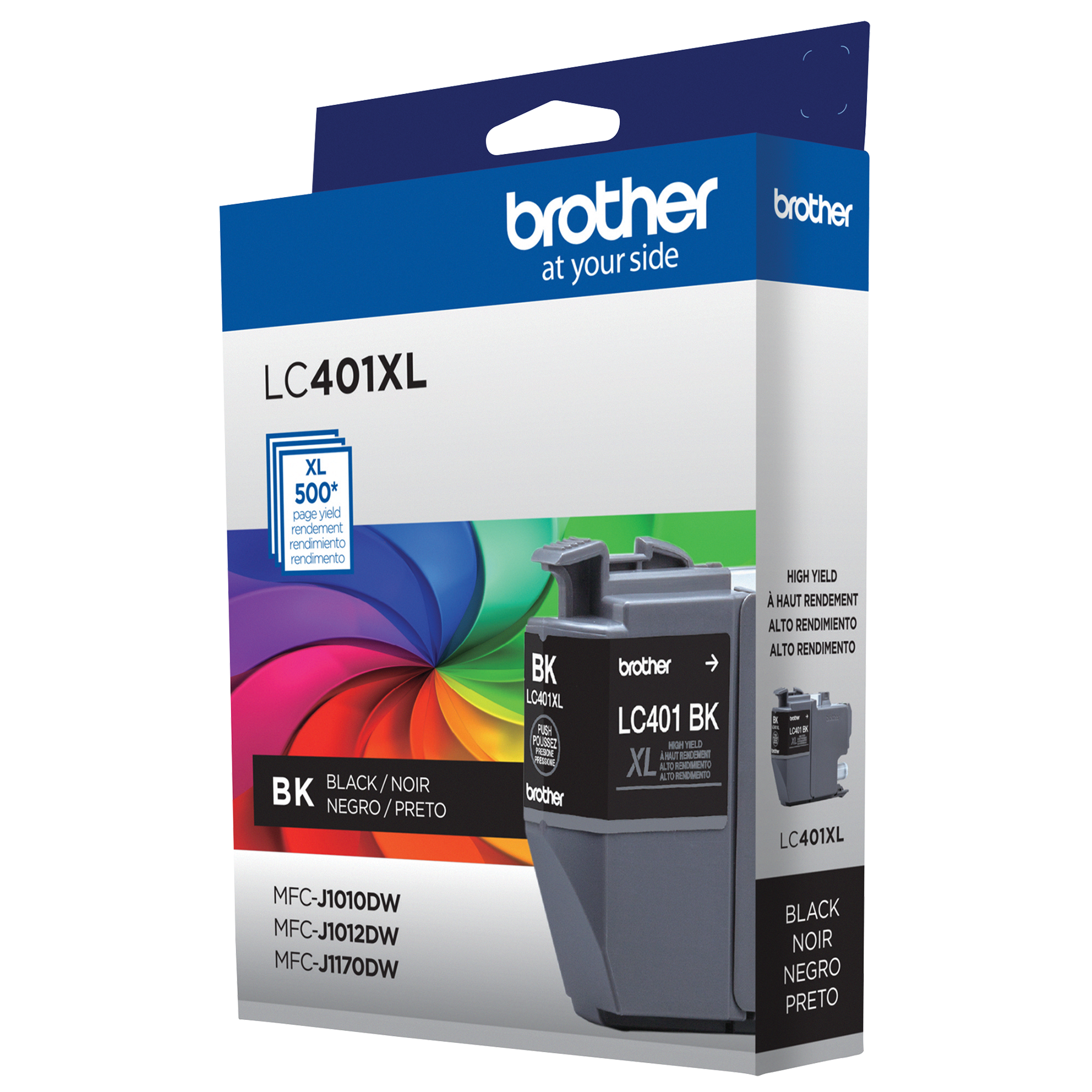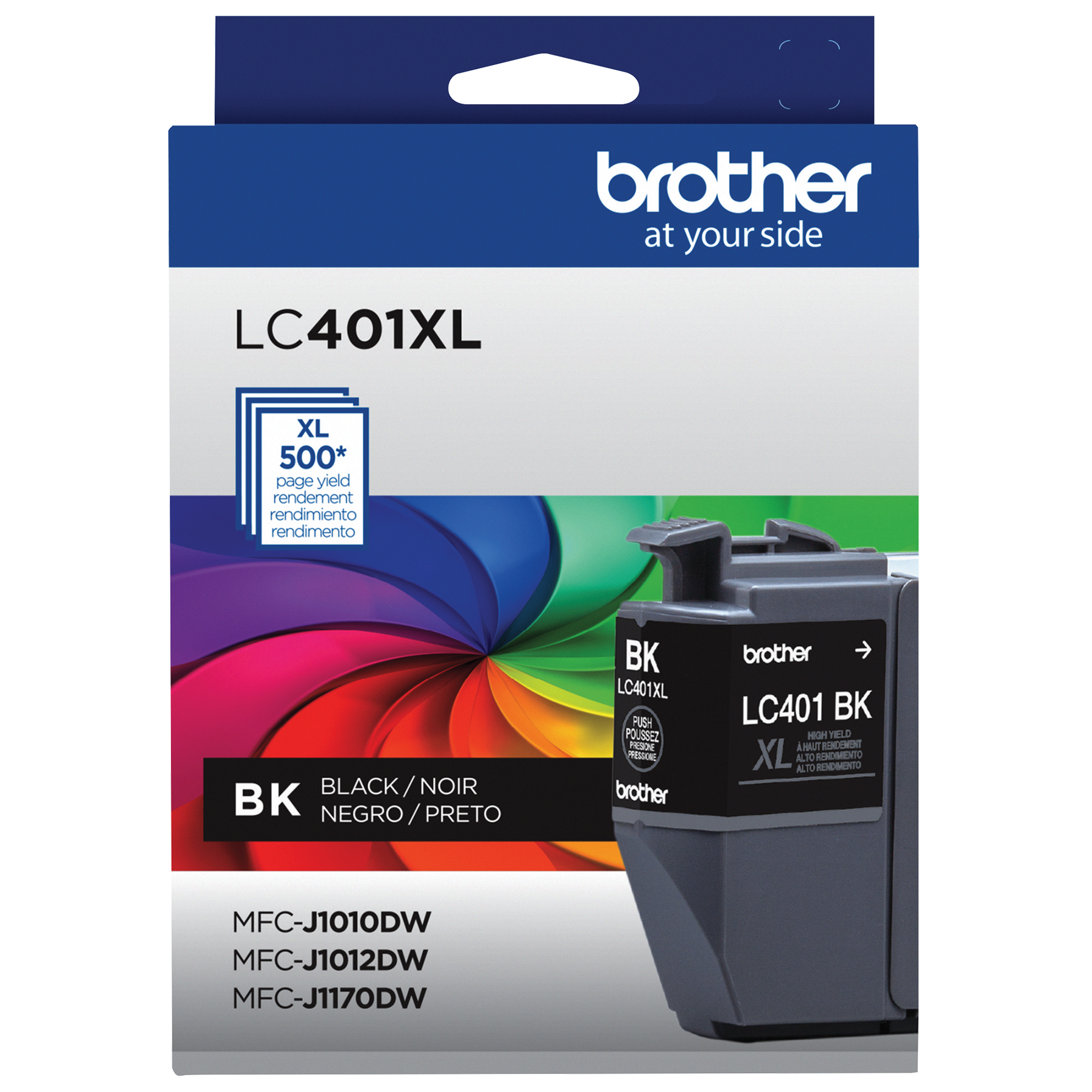 - Les cartouches d'encre authentique LC401XLBKS sont compatibles avec les imprimantes multifonction à jet d'encre couleur de Brother suivantes : MFC-J1010DW, MFC-J1012DW et MFC-J1170DW.