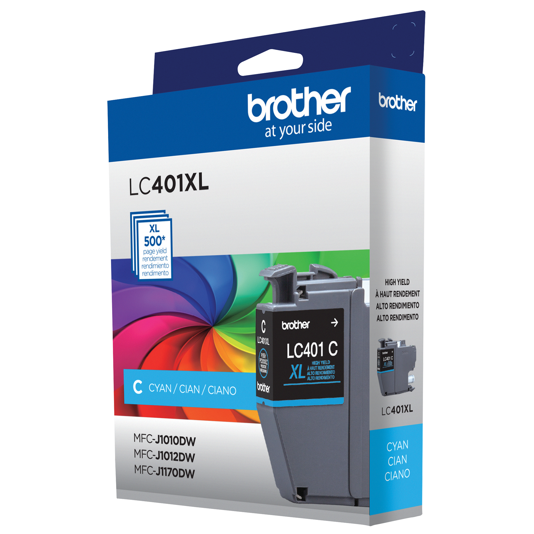 - La cartouche LC401XLCS d'origine Brother peut être utilisée avec les imprimantes multifonctions à jet d'encre couleur Brother suivantes : MFC-J1010DW, MFC-J1012DW et MFC-J1170DW.