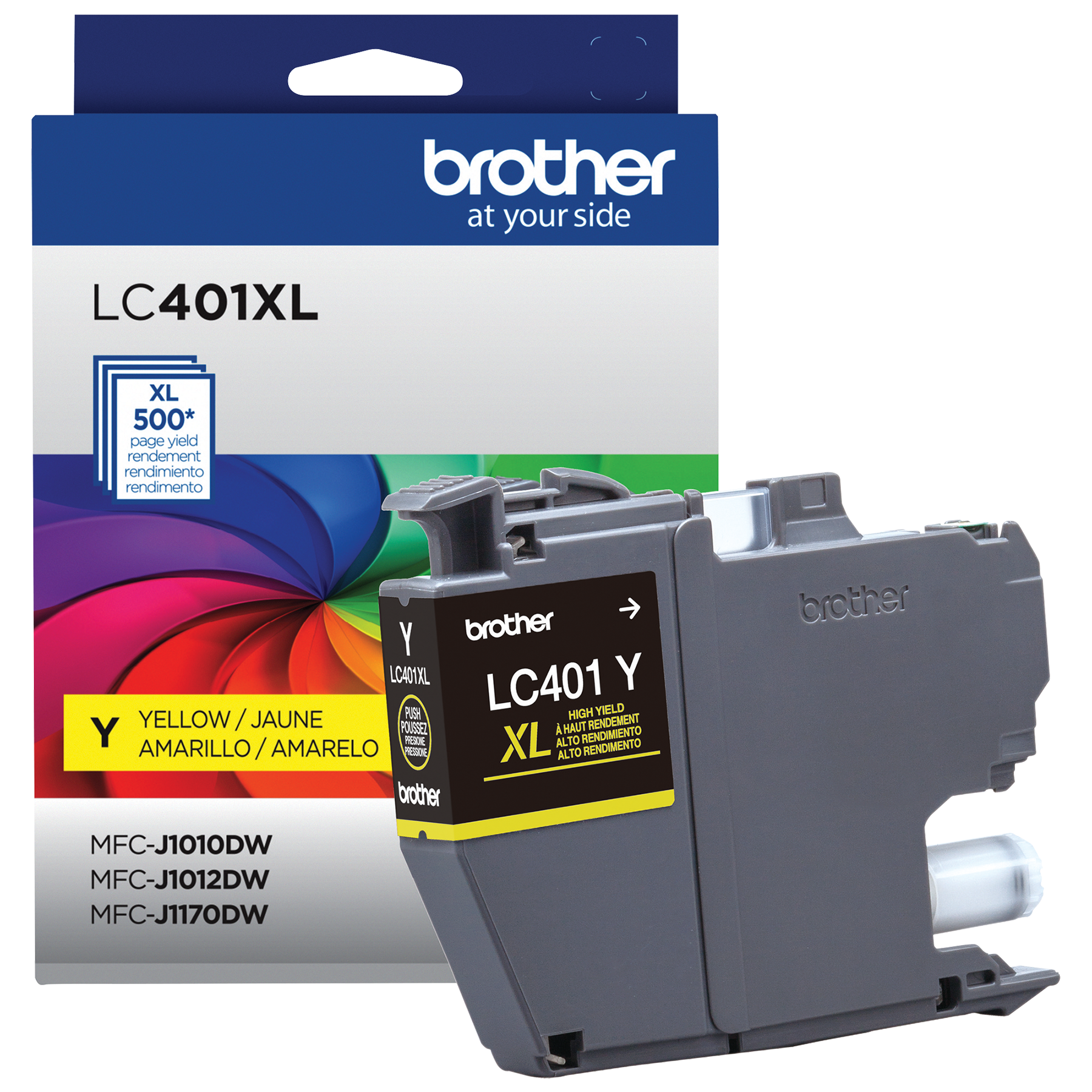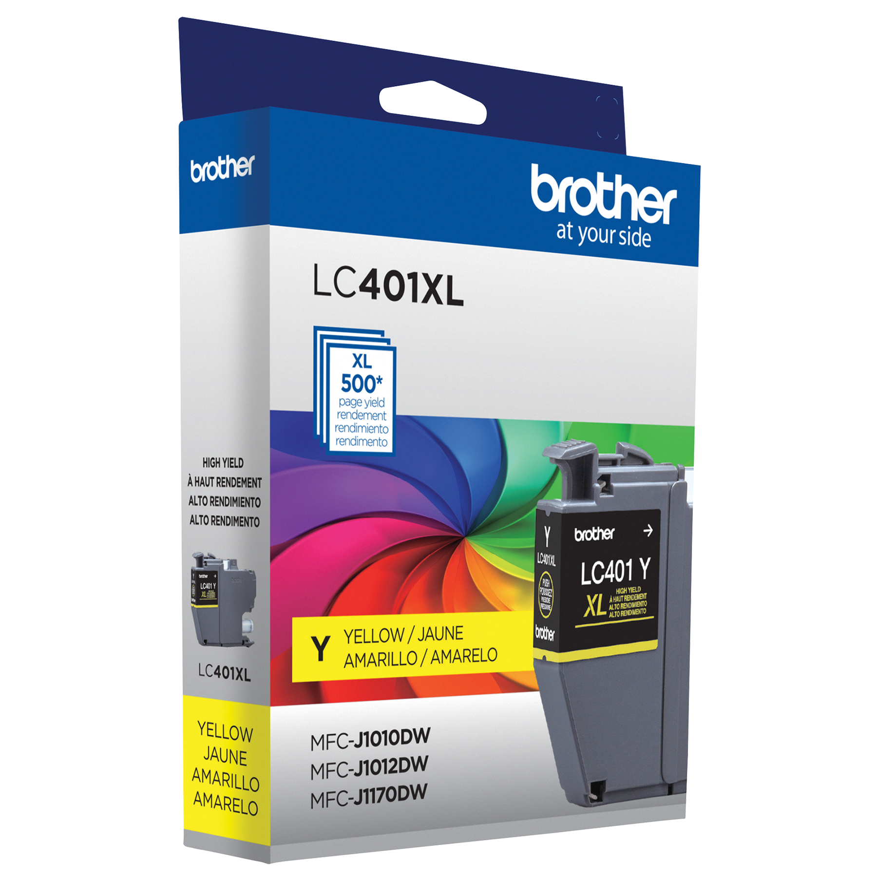 Cette cartouche d'encre jaune à haut rendement LC401XLYS d'origine Brother permet d'obtenir des impressions couleur de haute qualité sur lesquelles vous pouvez compter jusqu'à 500 pages. Intelligemment conçue comme un système d impression complet, elle fonctionne de façon transparente avec votre imprimante à jet d encre Brother pour produire des résultats aux couleurs riches et éclatantes et une qualité d'impression supérieure et constante. Parce que Brother se soucie de l'environnement, nous offrons une façon pour que les clients se débarrassent de leurs cartouches Brother d origine. Visitez www.brother-usa.com/Environment pour en savoir plus. Les cartouches d'encre jaune LC401XLYS de Brother peuvent être utilisées avec les modèles d'imprimantes multifonctions à jet d'encre couleur Brother suivants : MFC-J1010DW, MFC-J1012DW et MFC-J1170DW.