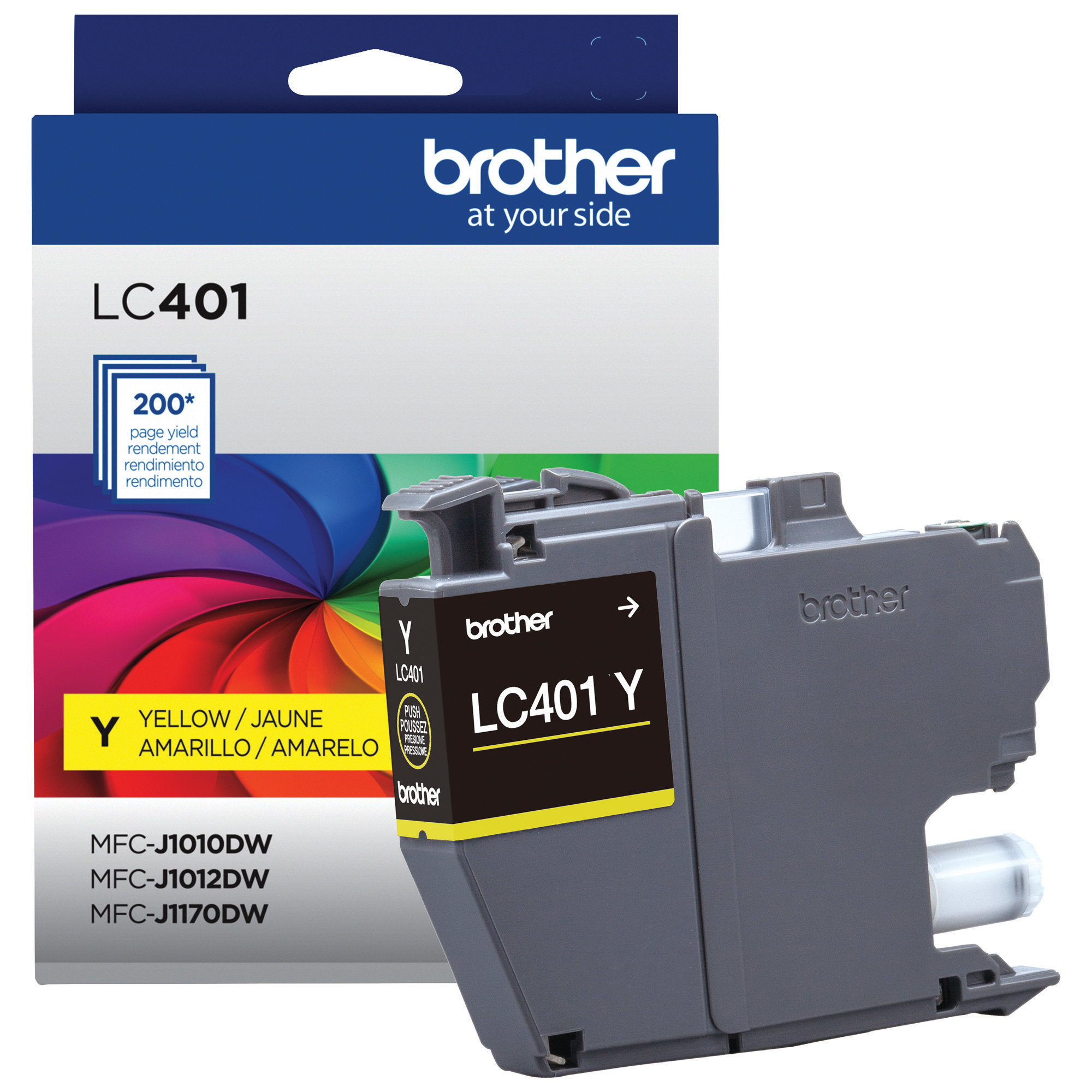 - La cartouche LC401YS d'origine Brother peut être utilisée avec les imprimantes multifonctions à jet d'encre couleur Brother suivantes : MFC-J1010DW, MFC-J1012DW et MFC-J1170DW.