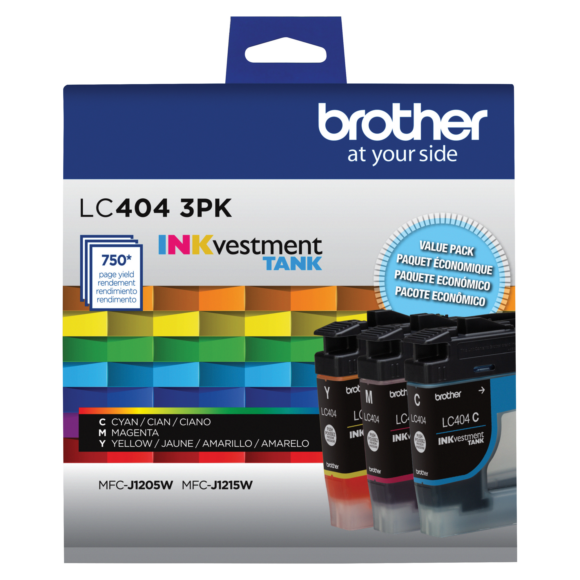 Obtenez des impressions à jet d'encre de haute qualité jusqu'à 750 pages/cartouche* avec l ensemble de 3 cartouches d'encre couleur d origine pratique LC4043PKS INKvestment Tank de Brother (1 cartouche cyan, magenta, jaune)