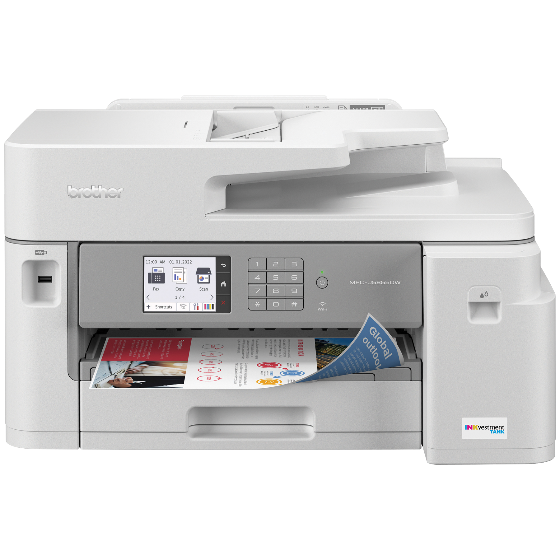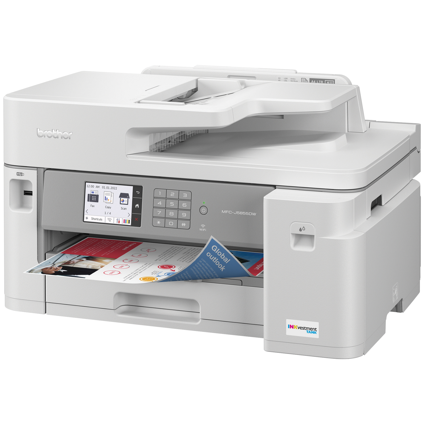 Tirant parti de la nouvelle technologie d'impression à jet d'encre INKvestment Tank de Brother, le MFC-J5855DW offre des vitesses d'impression allant jusqu'à 30 ppm, les plus rapides à ce jour. De plus, cet appareil offre un cycle de fonctionnement mensuel maximal de 40 000 pages, parfait pour suivre le rythme soutenu de votre petite entreprise.