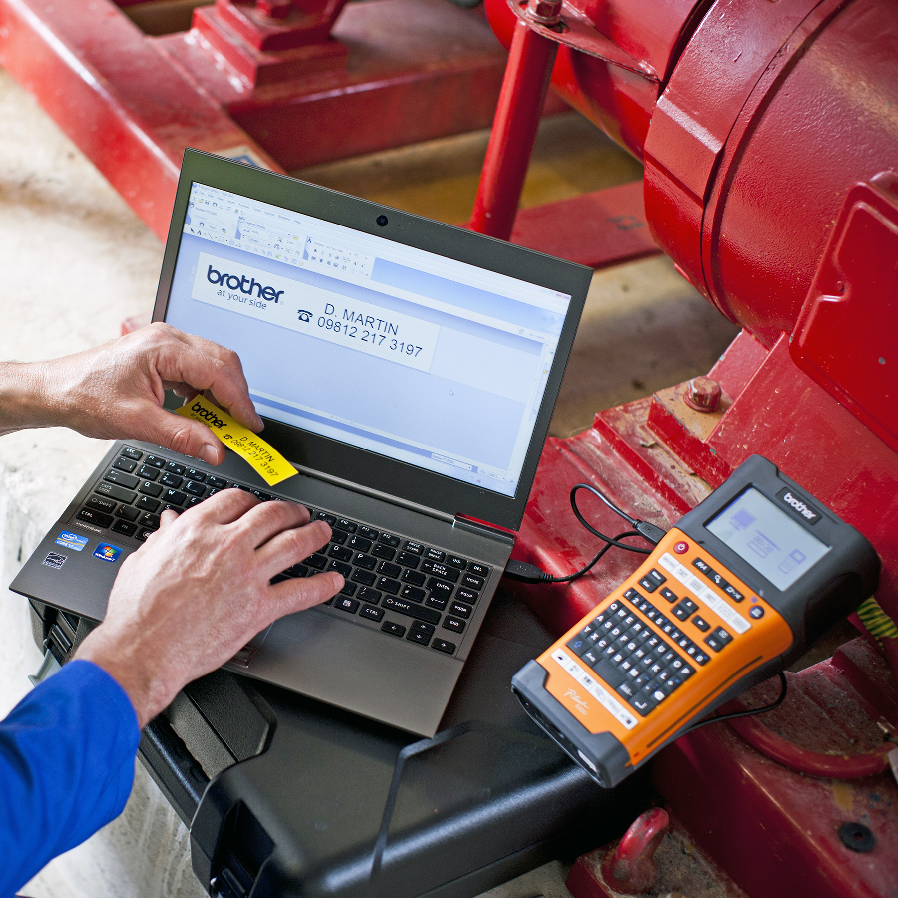 La trousse d'outils de l'étiqueteuse portable industrielle PT-E500VP est livrée avec un logiciel de conception pour vous aider à l'intégrer dans vos processus d'opérations. Concevez et imprimez vos étiquettes à partir d'un ordinateur ou connectez l'étiqueteuse à une base de données pour gagner du temps et réduire les erreurs. Téléchargez les gabarits avec une base de données et imprimez pratiquement n'importe où sans ordinateur. Sa technologie intelligente, son clavier QWERTY, son coupe-ruban automatique et son grand écran rétroéclairé rendent la PT-E500VP facile à utiliser pour l'impression d'étiquettes plus larges pour étiqueter câbles/fibre optique/fils, plaques frontales, panneaux de connexions, blocs de raccordement et plus encore. Il est également possible d'imprimer sur des tubes thermorétractables. Fournie avec logiciel, étui, batterie Li-ion, adaptateur et garantie limitée d'échange express d'un an.