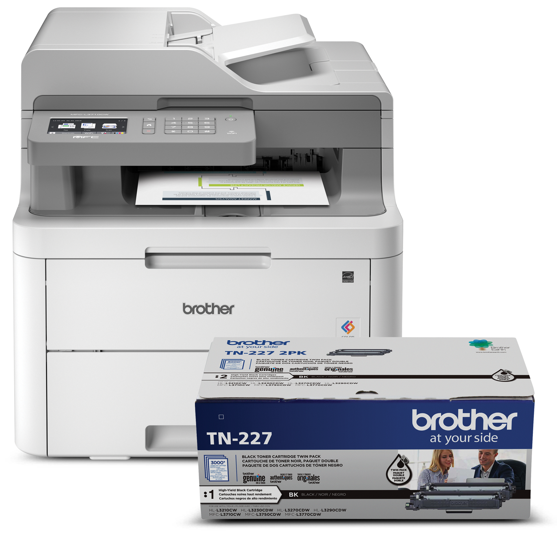 Ensemble Brother R3710TN227BUND Multifonction numérique couleur remis à neuf avec toner de départ et cartouche de toner laser noir à haut rendement TN227BK
