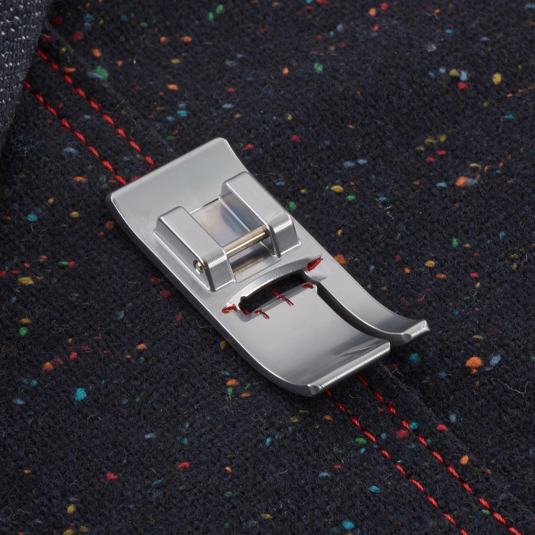 Réalisez des surpiqûres et des coutures ouvertes à bords piqués précises sur des tissus de différentes épaisseurs sur le côté droit de votre ouvrage avec le pied à double niveau droit SA103C de Brother, un ajout essentiel à votre gammeb d accessoires de machine à coudre qui vous sera également utile pour réaliser des surpiqûres en bordure lors de la courtepointe.