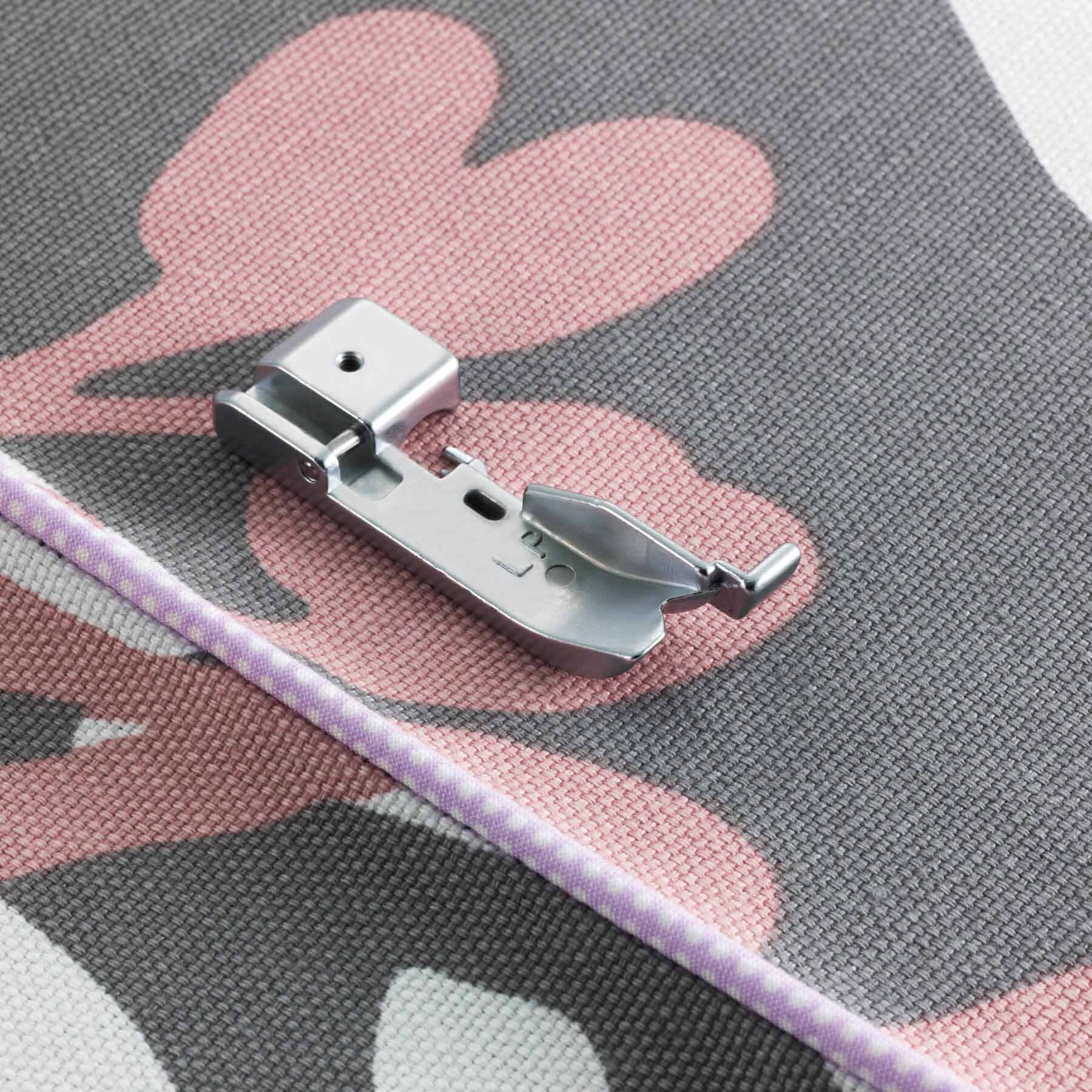 Ce pied ganseur pour surjeteuse authentique de Brother guide et maintient les passepoils étroits lorsque vous utilisez votre surjeteuse. Créez vos propres passepoils à l'aide de bandes de tissu et de cordon passepoil. Il maintient et guide le passepoil, éliminant ainsi le besoin d'utiliser des épingles. Créez des passepoils remplis en biais pour les courroies sur mesure.