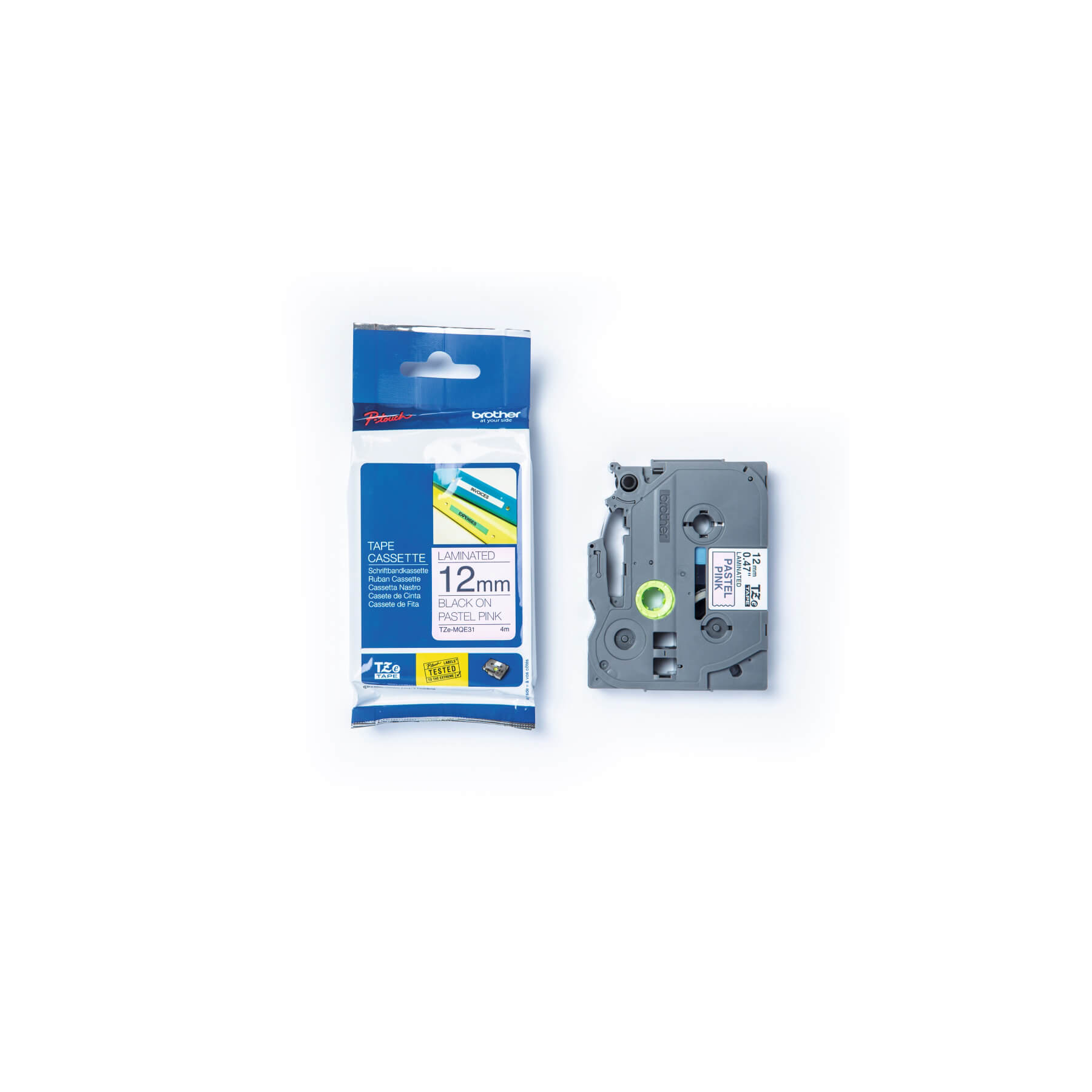 Brother TZEMQE31 Ruban rose pastel avec texte noir pour P-touch 12 mm (0,47 po) x 4 m (13,12 pi)